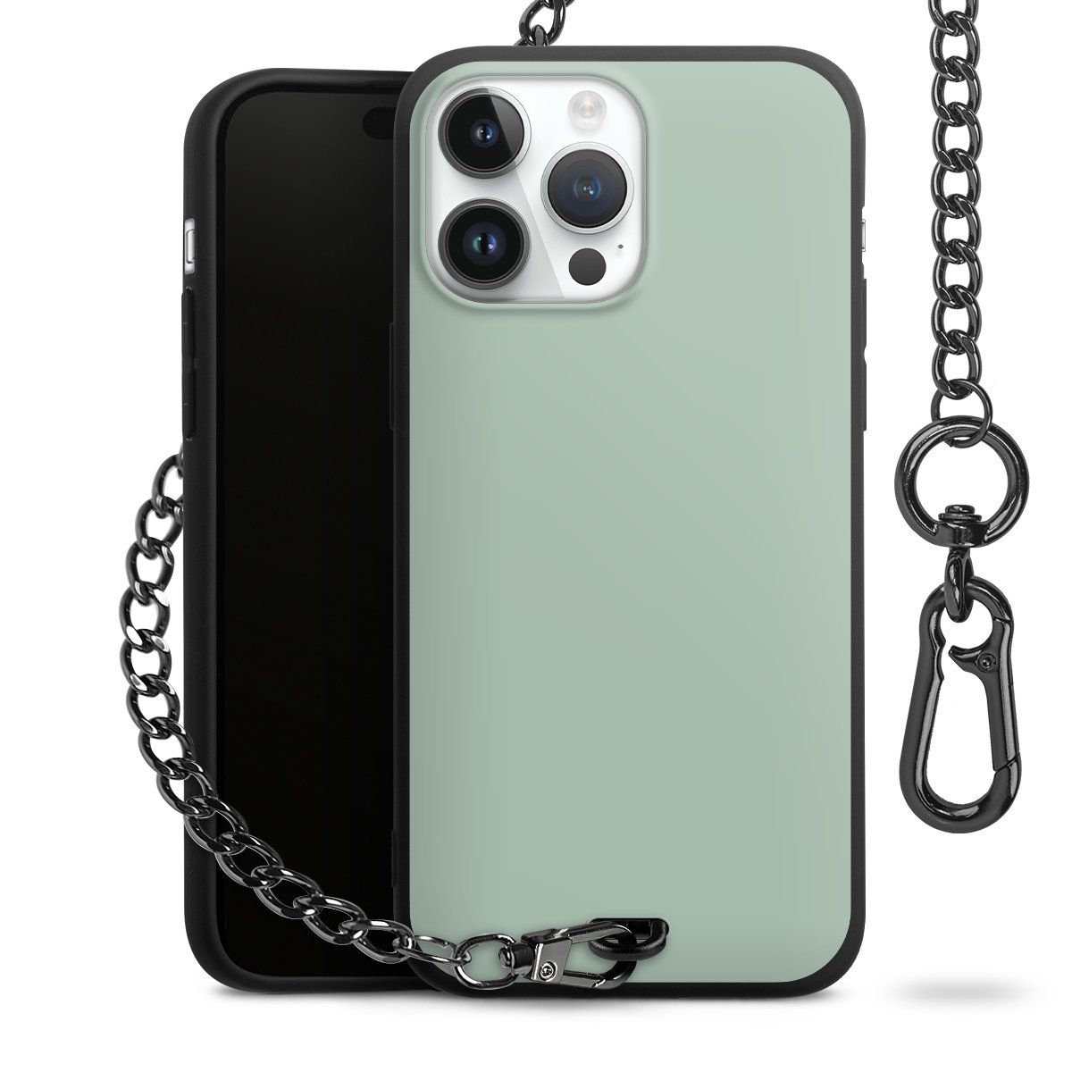 - Mattschwarze Handyhülle mit Metallkette