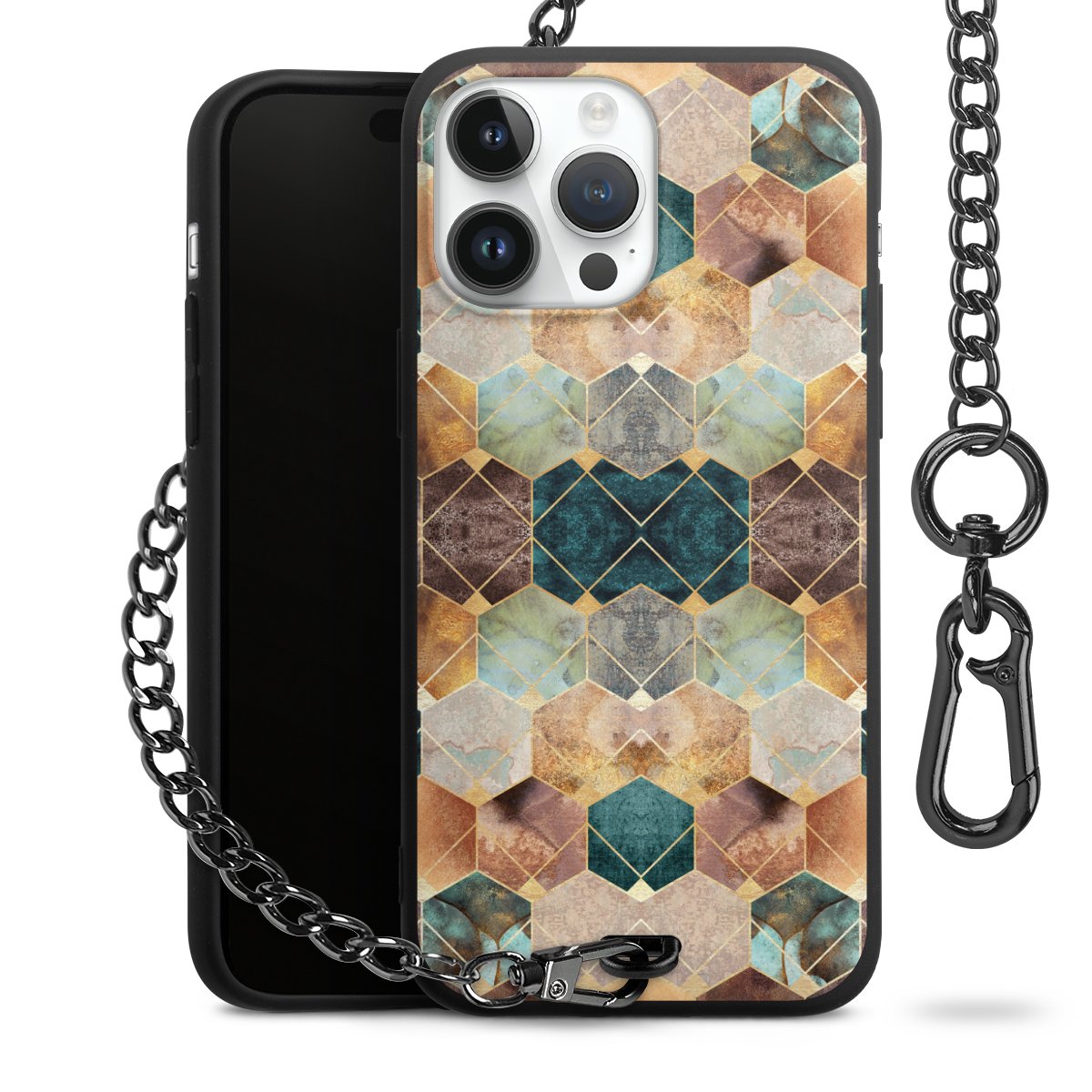 • Mattschwarze Handyhülle mit Metallkette