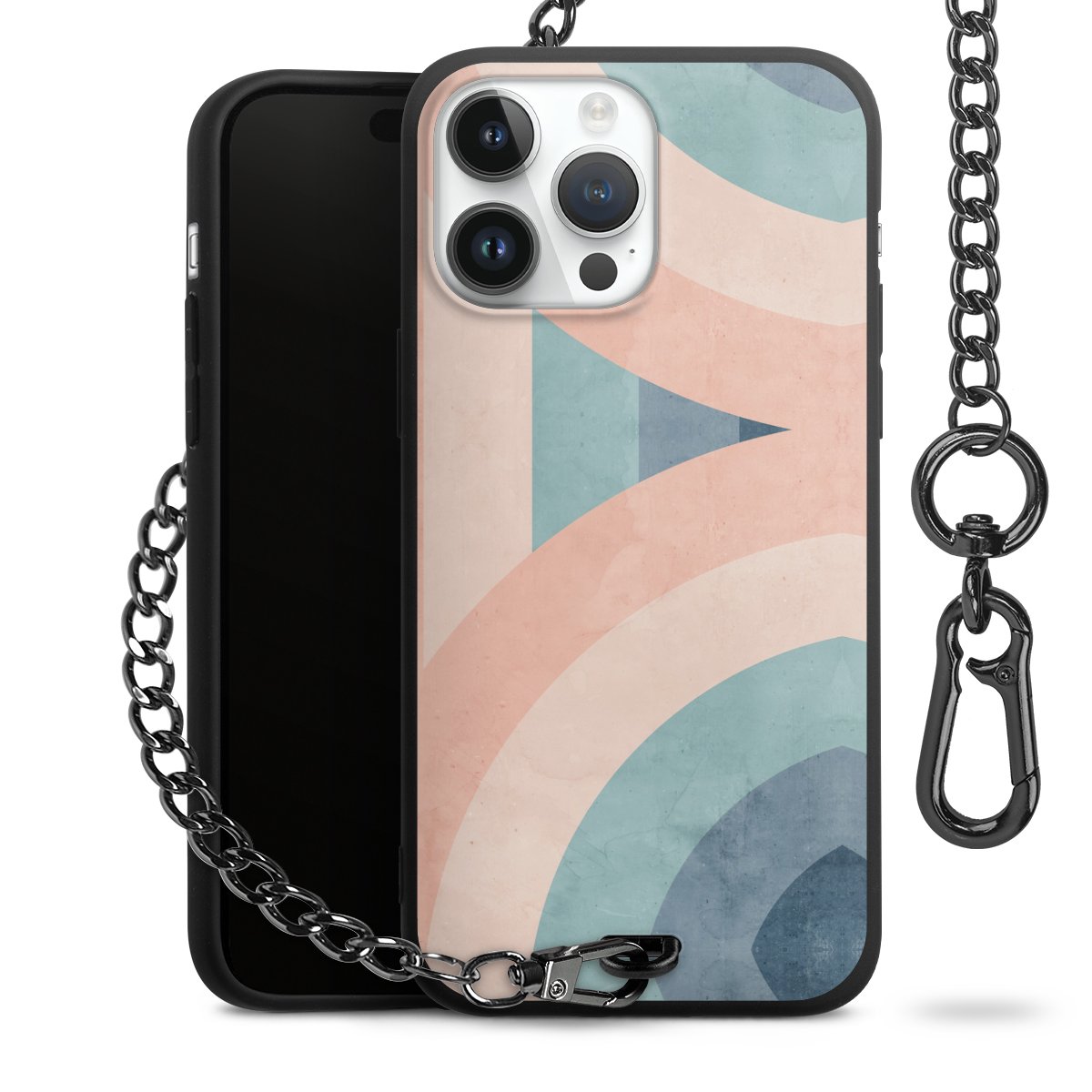 • Mattschwarze Handyhülle mit Metallkette