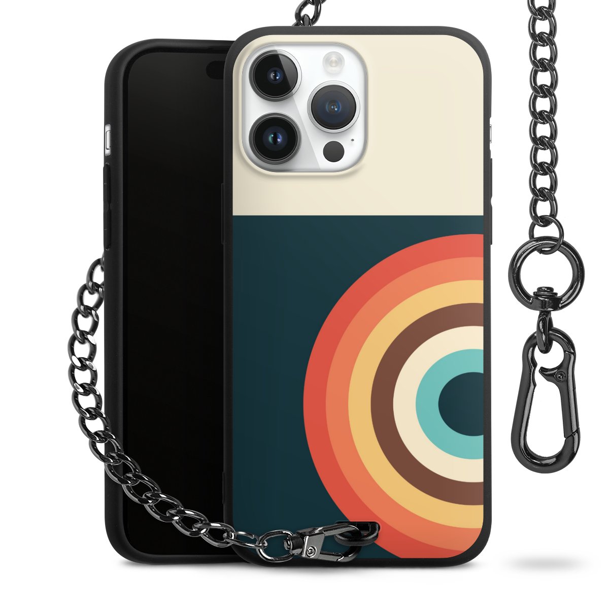 • Mattschwarze Handyhülle mit Metallkette