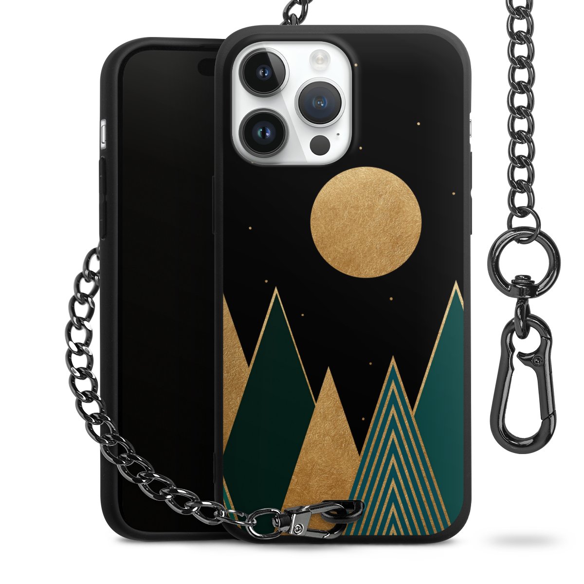 • Mattschwarze Handyhülle mit Metallkette
