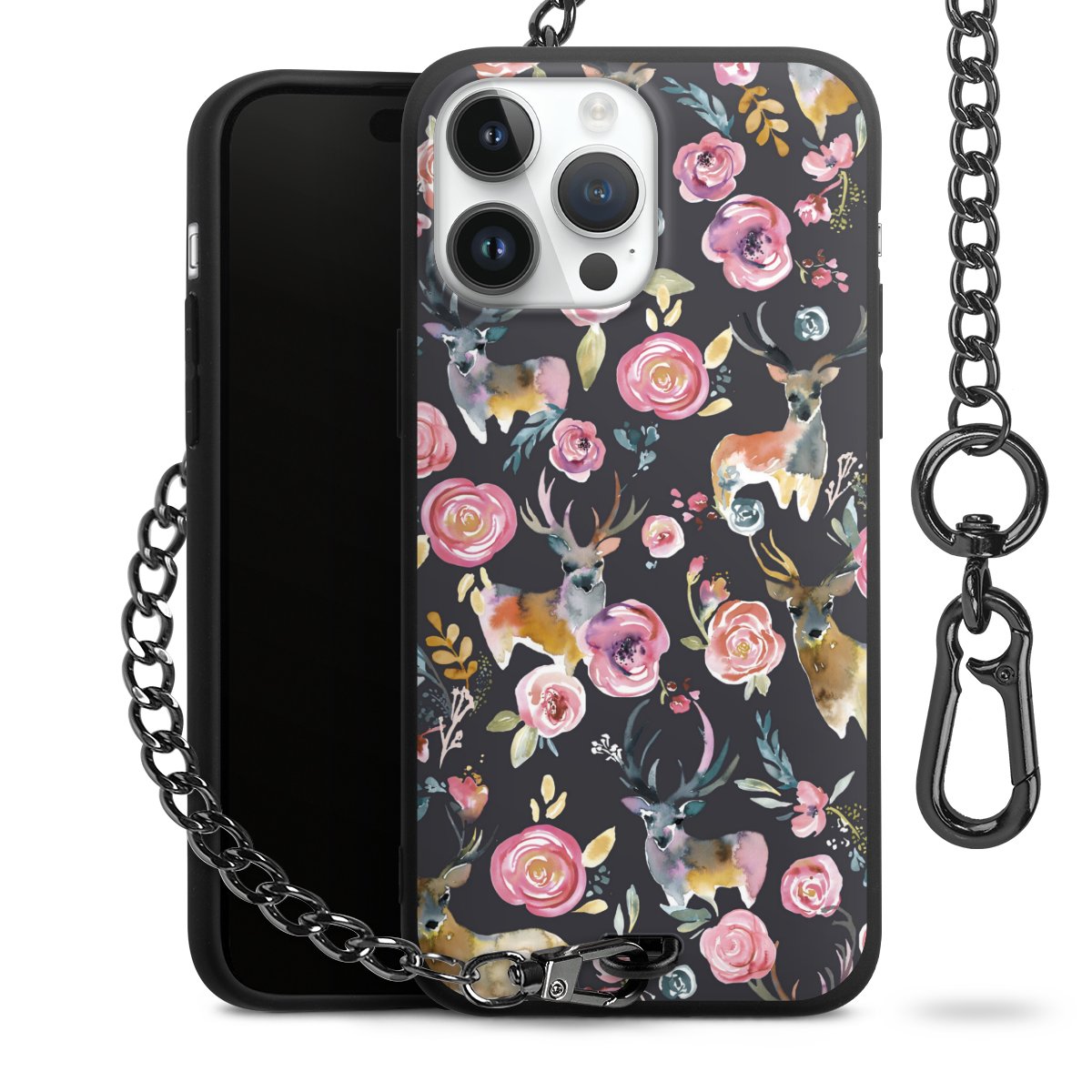 • Mattschwarze Handyhülle mit Metallkette