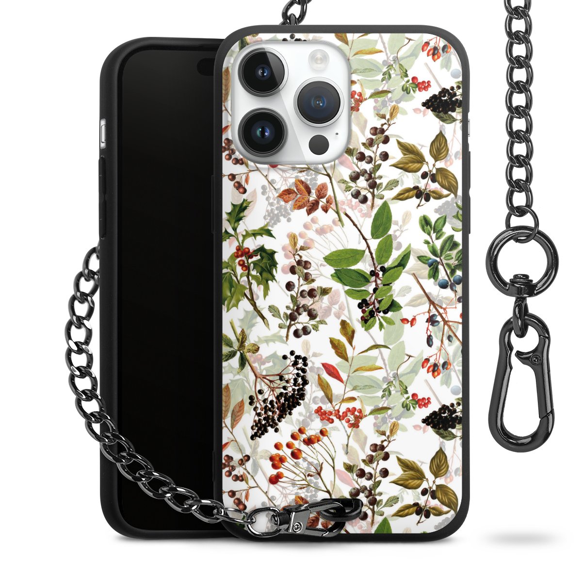 • Mattschwarze Handyhülle mit Metallkette