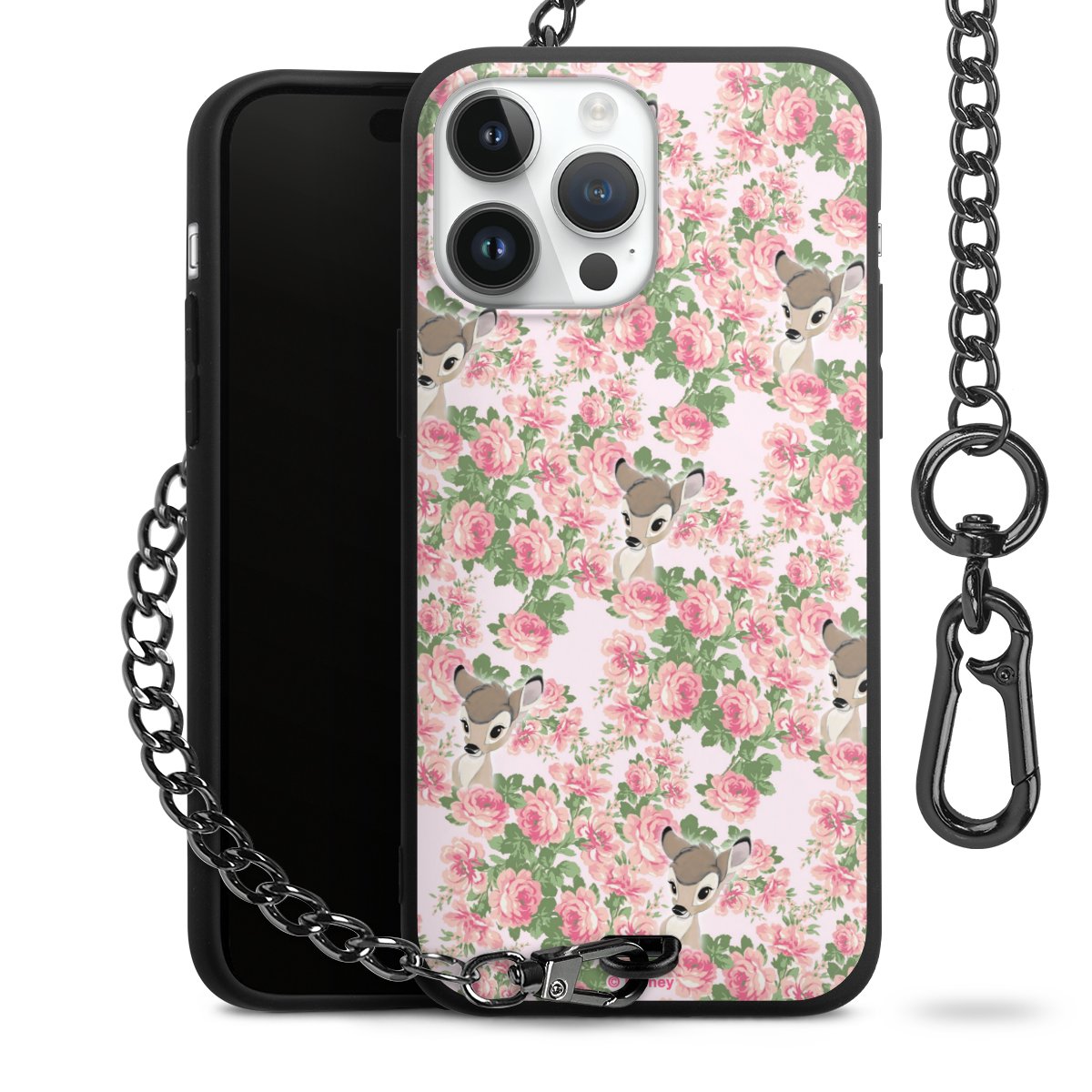 Die Handyhülle verfügt über eine mittig am unteren Rand platzierte Öse, an der die Metallkette stabil befestigt ist. Bestelle die Hülle einfach für Dein Smartphone-Modell, dann passt sie wie angegossen und Du brauchst sie bloß einmal anzudrücken. Handy in die Tasche, Karabiner an den Hosenbund – schon kann die Party starten.