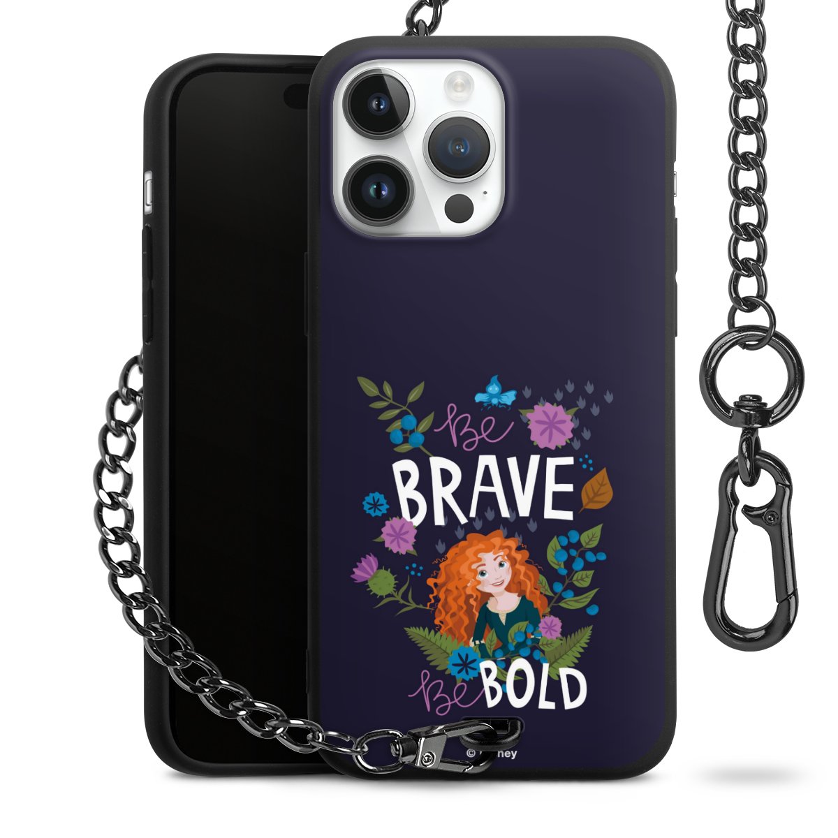 - Mattschwarze Handyhülle mit Metallkette