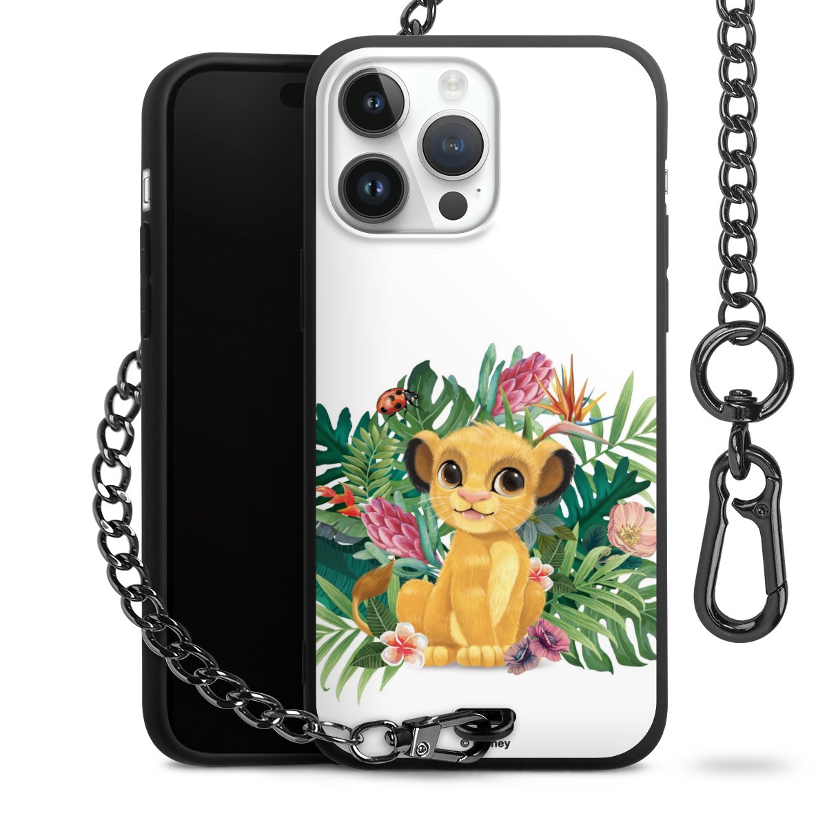 Die Handyhülle verfügt über eine mittig am unteren Rand platzierte Öse, an der die Metallkette stabil befestigt ist. Bestelle die Hülle einfach für Dein Smartphone-Modell, dann passt sie wie angegossen und Du brauchst sie bloß einmal anzudrücken. Handy in die Tasche, Karabiner an den Hosenbund – schon kann die Party starten.