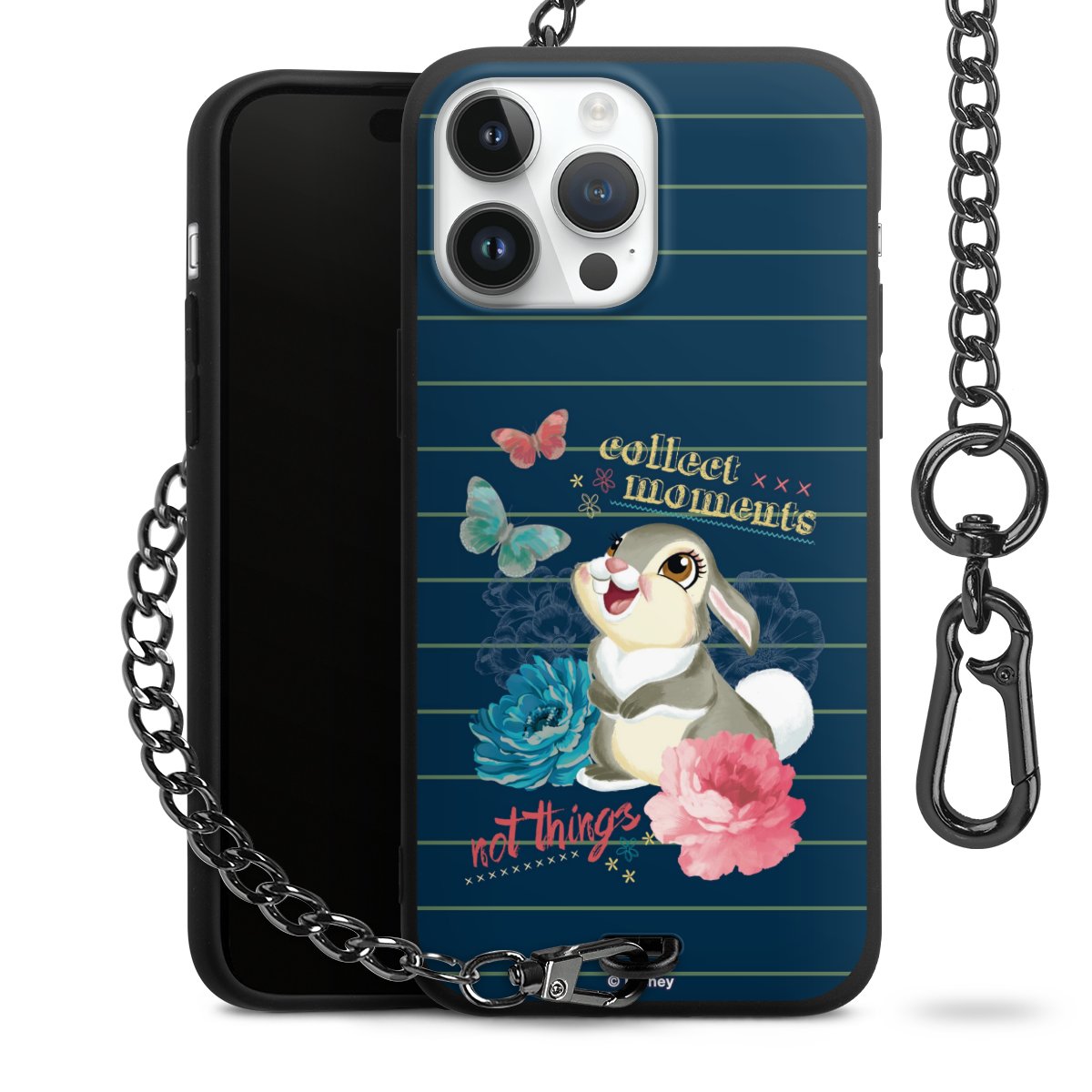 Die Handyhülle verfügt über eine mittig am unteren Rand platzierte Öse, an der die Metallkette stabil befestigt ist. Bestelle die Hülle einfach für Dein Smartphone-Modell, dann passt sie wie angegossen und Du brauchst sie bloß einmal anzudrücken. Handy in die Tasche, Karabiner an den Hosenbund – schon kann die Party starten.