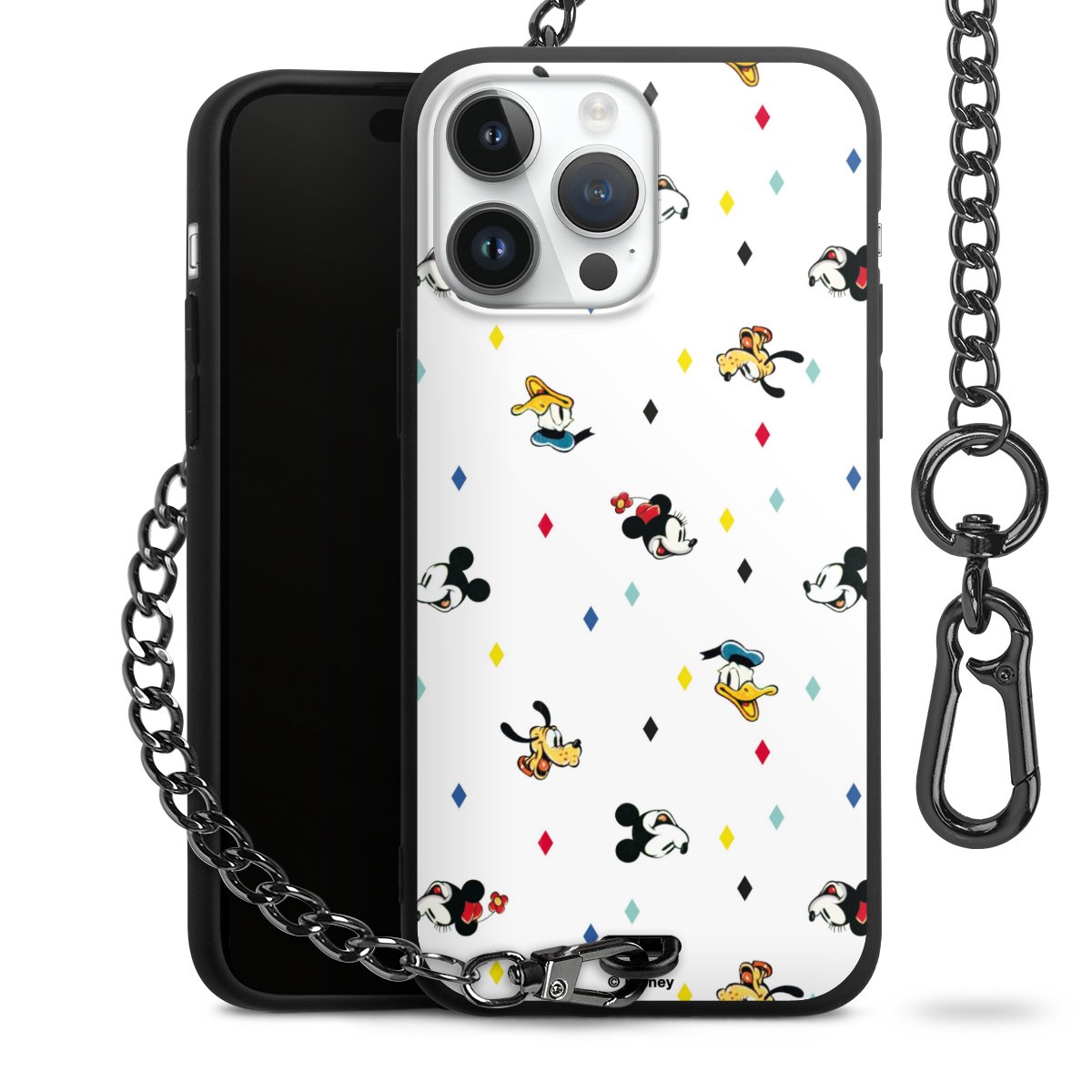 • Mattschwarze Handyhülle mit Metallkette