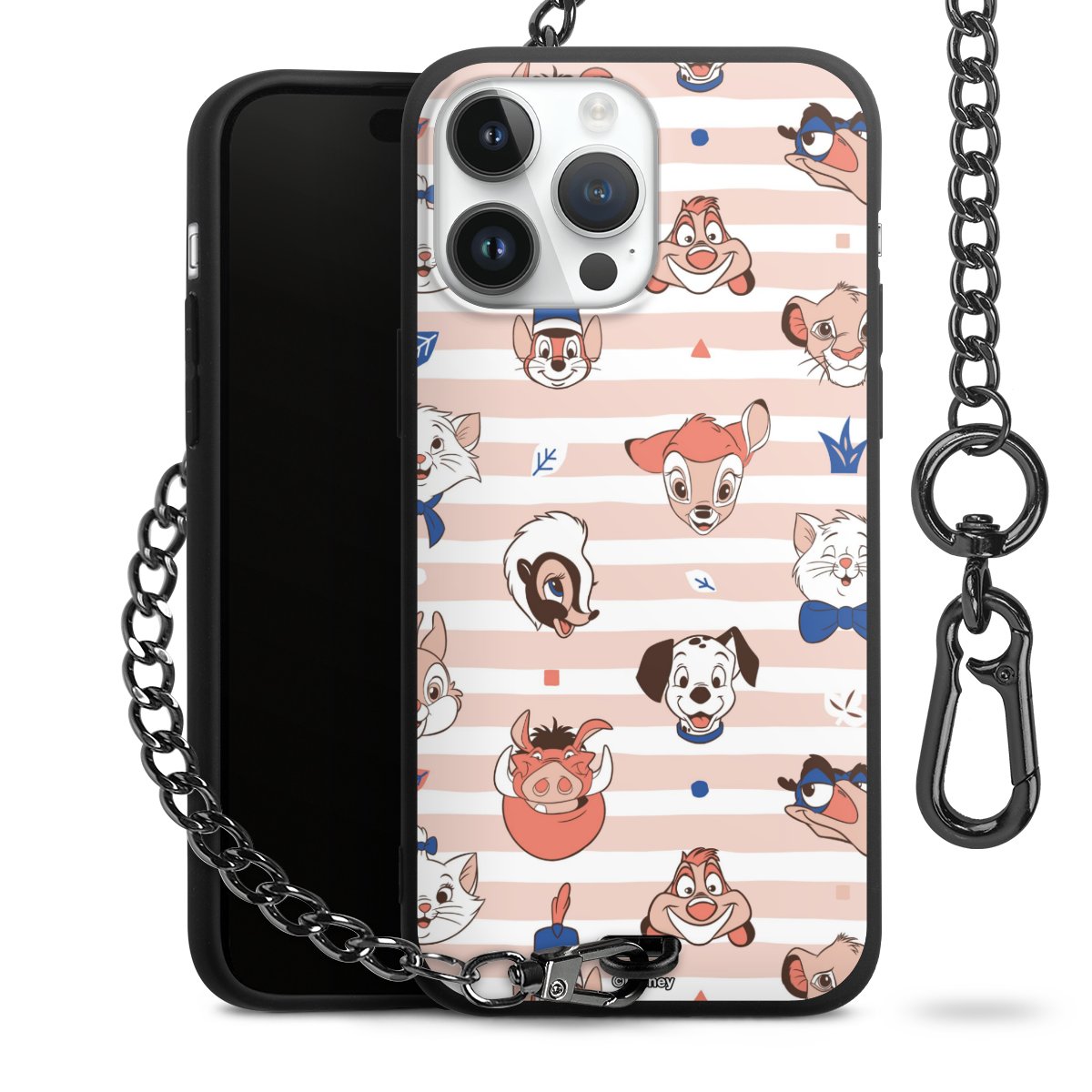 Die Handyhülle verfügt über eine mittig am unteren Rand platzierte Öse, an der die Metallkette stabil befestigt ist. Bestelle die Hülle einfach für Dein Smartphone-Modell, dann passt sie wie angegossen und Du brauchst sie bloß einmal anzudrücken. Handy in die Tasche, Karabiner an den Hosenbund – schon kann die Party starten.