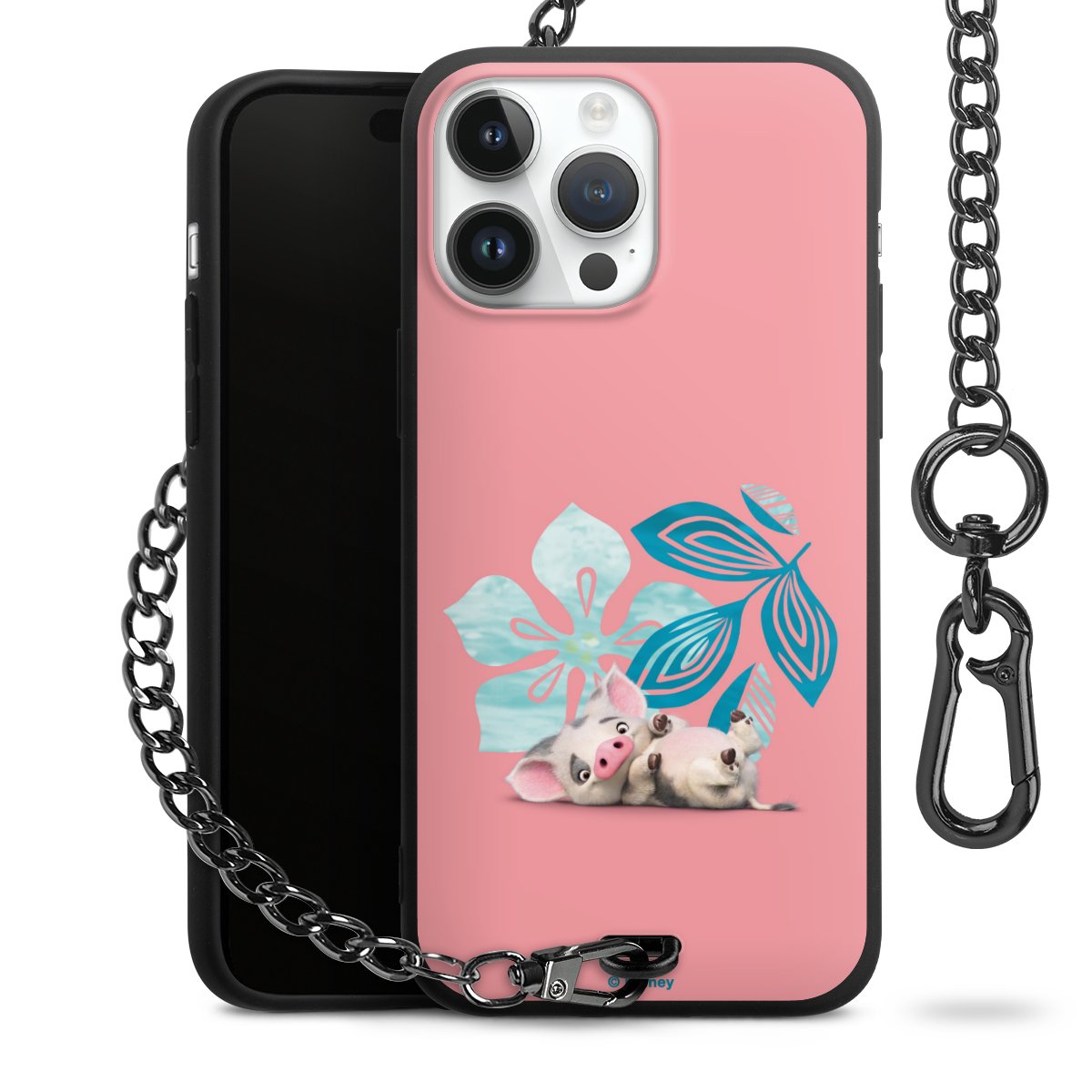 Die Handyhülle verfügt über eine mittig am unteren Rand platzierte Öse, an der die Metallkette stabil befestigt ist. Bestelle die Hülle einfach für Dein Smartphone-Modell, dann passt sie wie angegossen und Du brauchst sie bloß einmal anzudrücken. Handy in die Tasche, Karabiner an den Hosenbund – schon kann die Party starten.