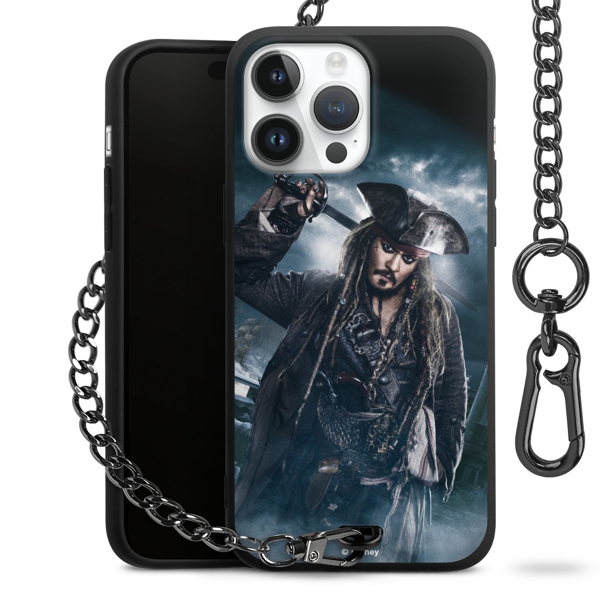 • Mattschwarze Handyhülle mit Metallkette