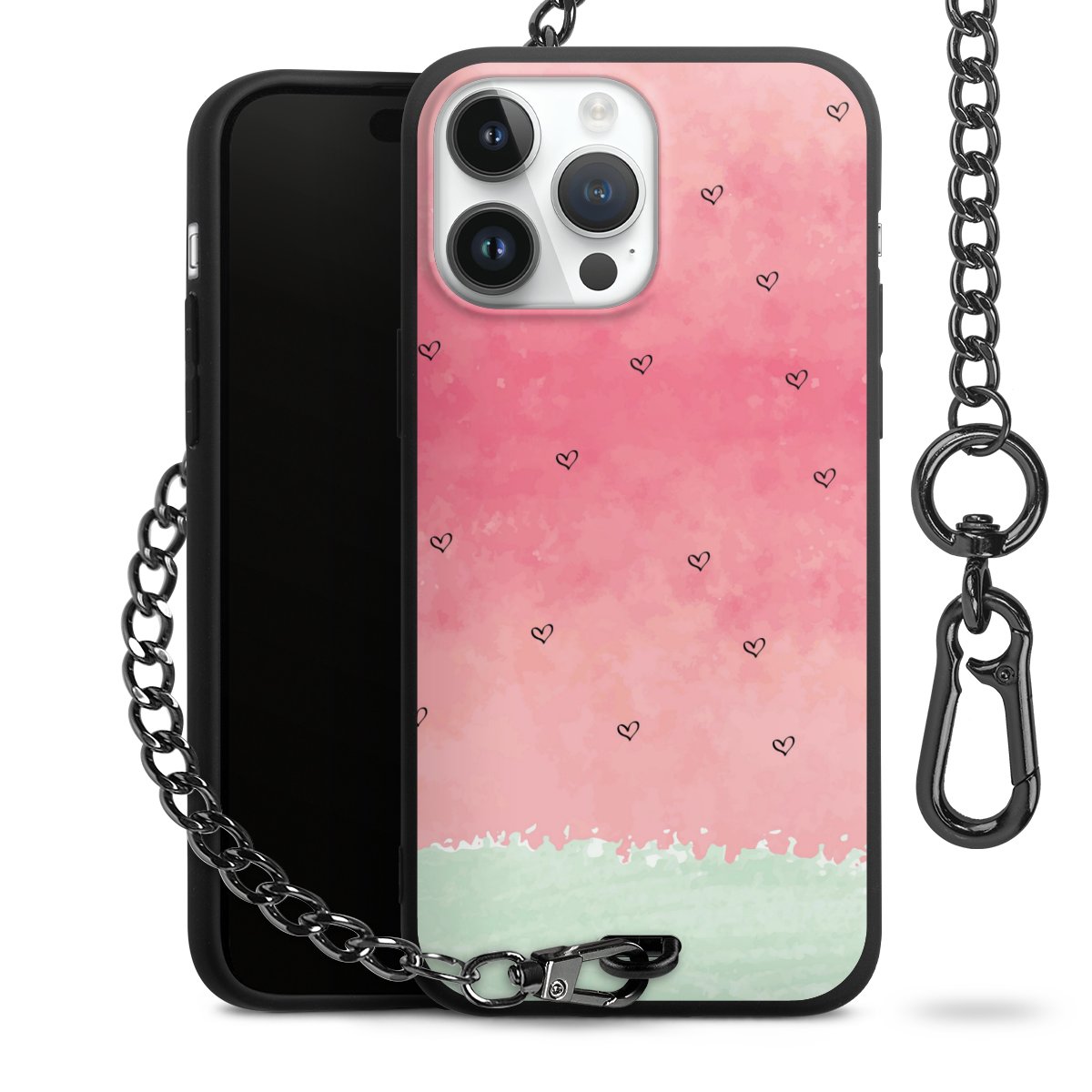 - Mattschwarze Handyhülle mit Metallkette