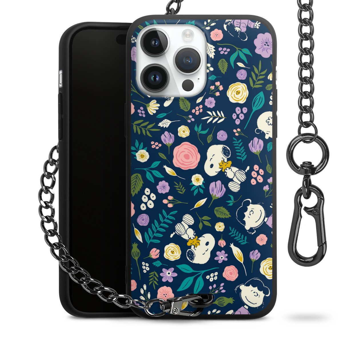 • Mattschwarze Handyhülle mit Metallkette