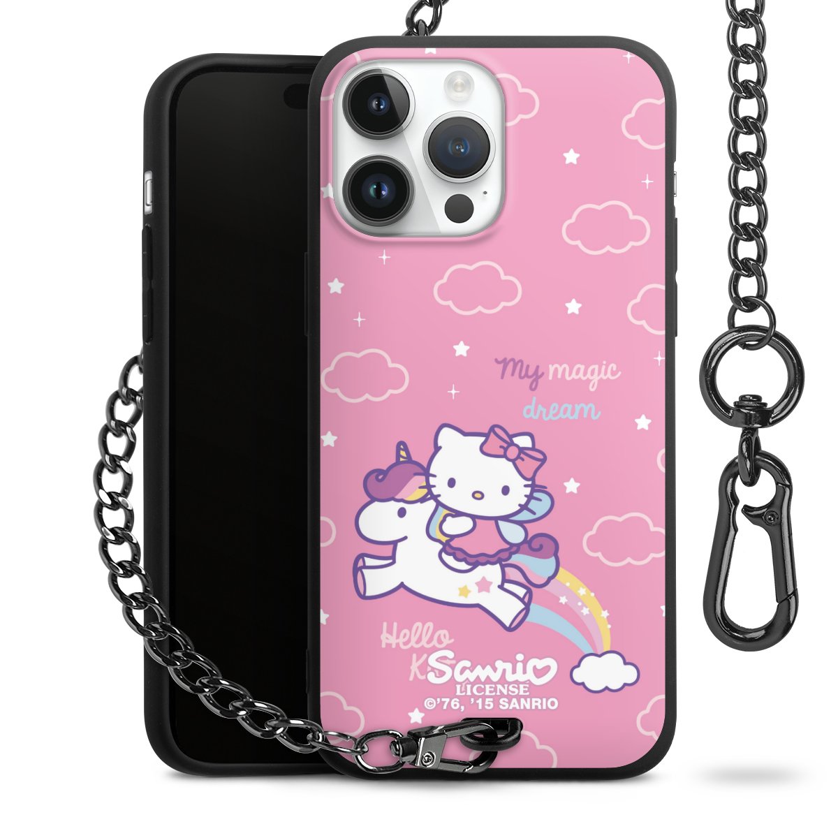 Die mattschwarze Silikon-Handyhülle besteht aus robustem TPU (thermoplastisches Polyurethan). Sie ist flexibel und schützt Dein Smartphone vor Stößen und Kratzern. Die Kette sowie der Karabinerhaken sind aus Metall in Gunmetal-Optik gefertigt. Für dieses Produkt kommen ausschließlich TÜV-geprüfte Materialien zum Einsatz.