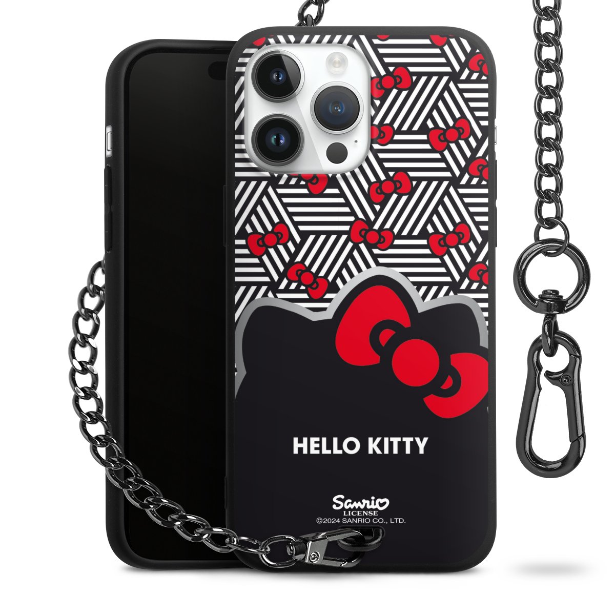 Die mattschwarze Silikon-Handyhülle besteht aus robustem TPU (thermoplastisches Polyurethan). Sie ist flexibel und schützt Dein Smartphone vor Stößen und Kratzern. Die Kette sowie der Karabinerhaken sind aus Metall in Gunmetal-Optik gefertigt. Für dieses Produkt kommen ausschließlich TÜV-geprüfte Materialien zum Einsatz.