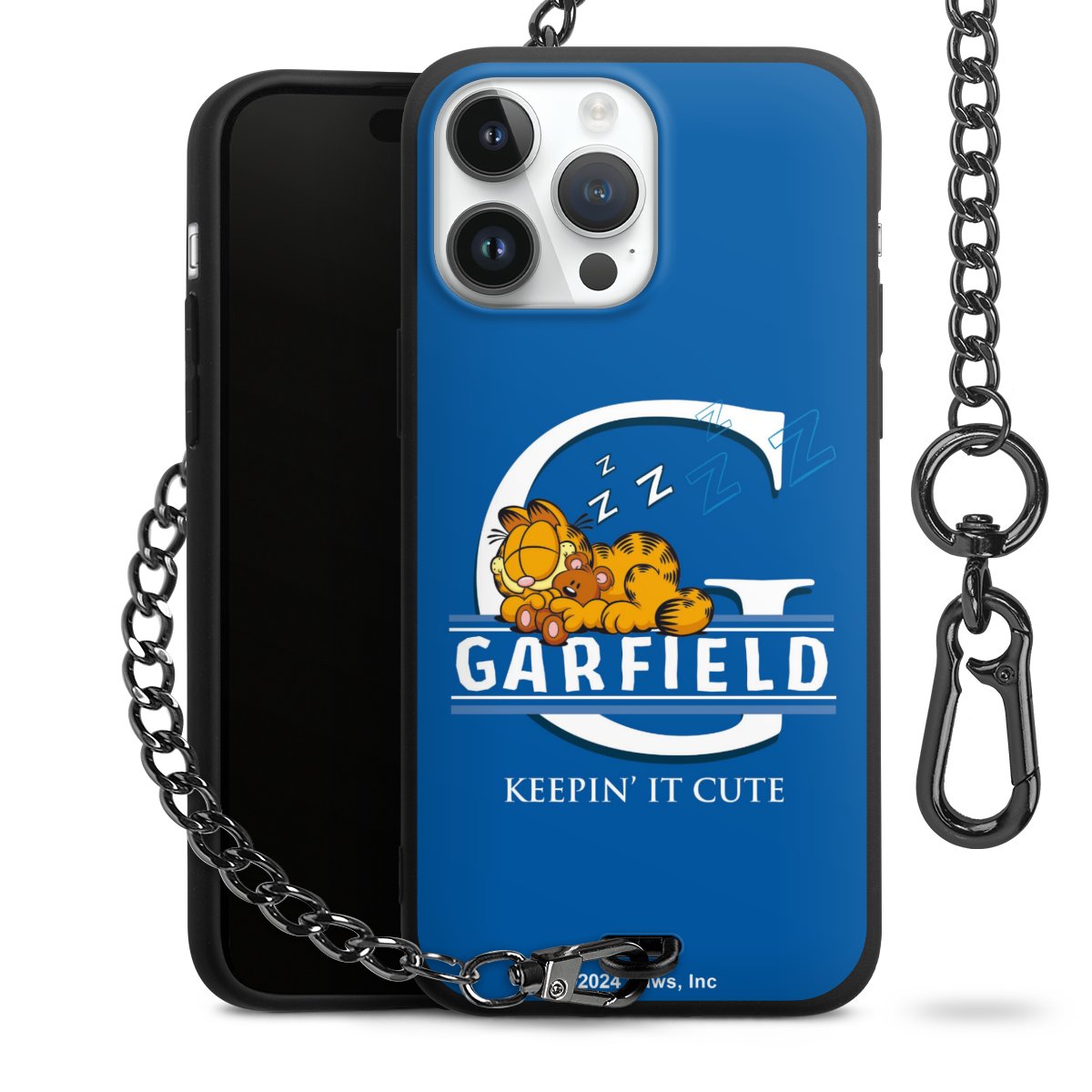 Die Handyhülle verfügt über eine mittig am unteren Rand platzierte Öse, an der die Metallkette stabil befestigt ist. Bestelle die Hülle einfach für Dein Smartphone-Modell, dann passt sie wie angegossen und Du brauchst sie bloß einmal anzudrücken. Handy in die Tasche, Karabiner an den Hosenbund – schon kann die Party starten.