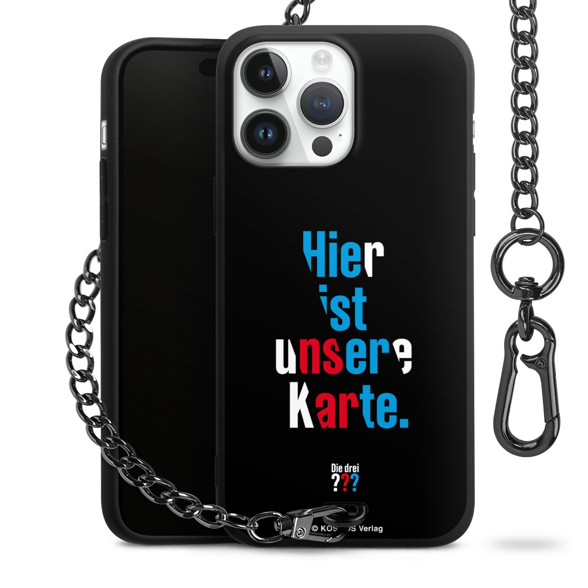 Die Handyhülle verfügt über eine mittig am unteren Rand platzierte Öse, an der die Metallkette stabil befestigt ist. Bestelle die Hülle einfach für Dein Smartphone-Modell, dann passt sie wie angegossen und Du brauchst sie bloß einmal anzudrücken. Handy in die Tasche, Karabiner an den Hosenbund – schon kann die Party starten.