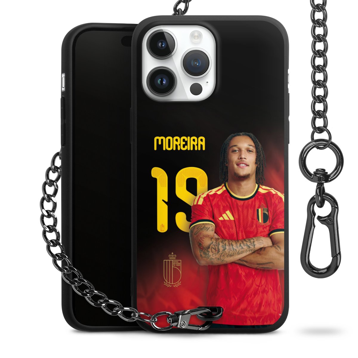 Ob im Alltag, beim Feiern mit Deinen Jungs oder auf Festivals – mit dem superpraktischen Belt Case steckst Du alle Sorgen um Diebstahl und Spider-App ganz entspannt in die Tasche. Es besteht aus einem coolen mattschwarzen Silikon Premium Case, dem Du ein individuelles Design verpassen kannst, und einer daran befestigten Kette in lässiger Gunmetal-Optik. Mit dem Karabiner auf der anderen Seite klickst Du die Kette mit einem Handgriff an Deine Gürtelschlaufe und schon ist Dein Smartphone sicher und stets griffbereit in der Hosentasche verstaut.