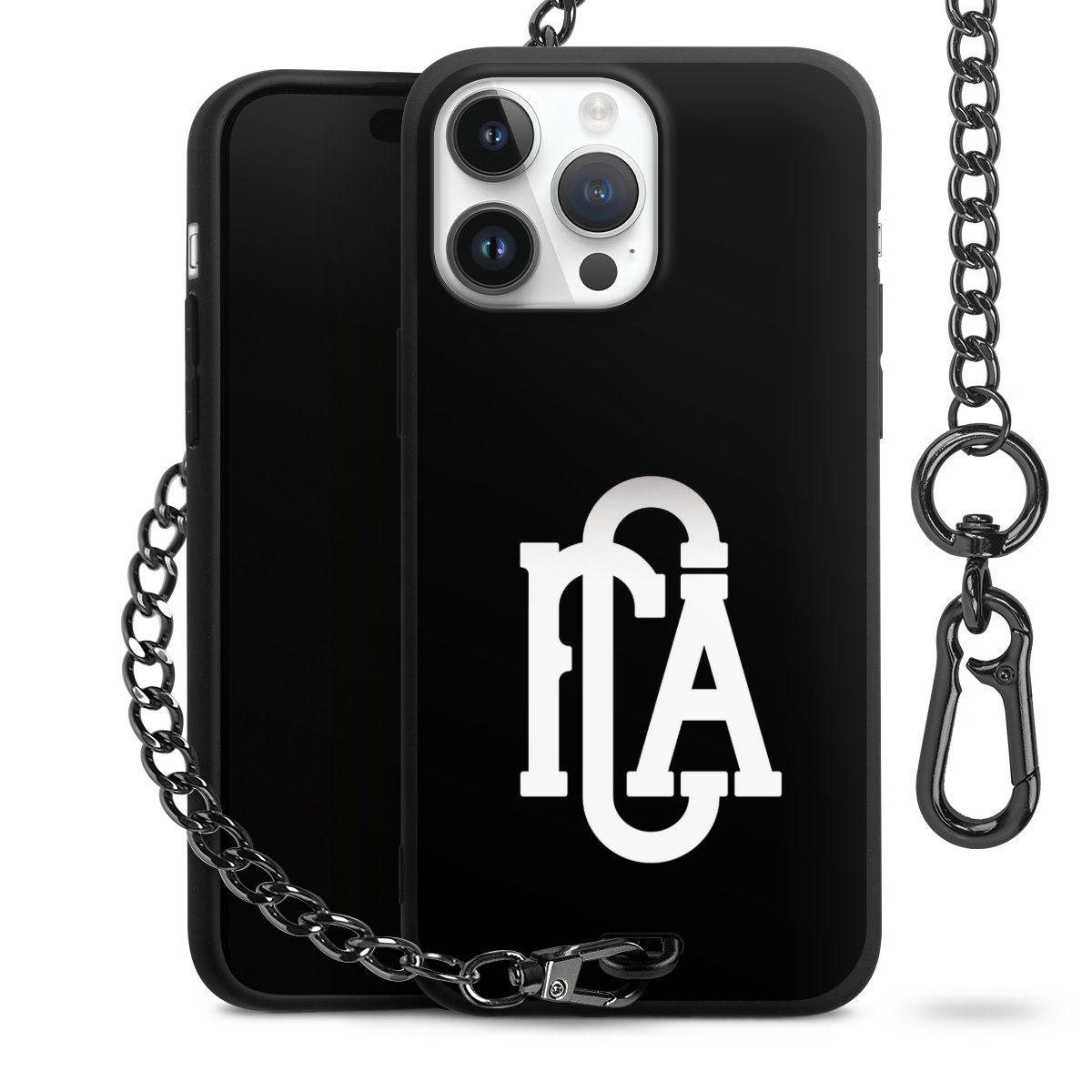 • Mattschwarze Handyhülle mit Metallkette