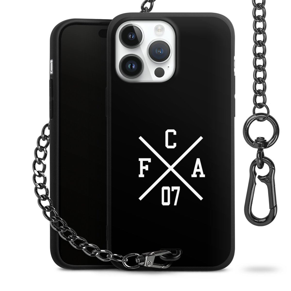 • Mattschwarze Handyhülle mit Metallkette