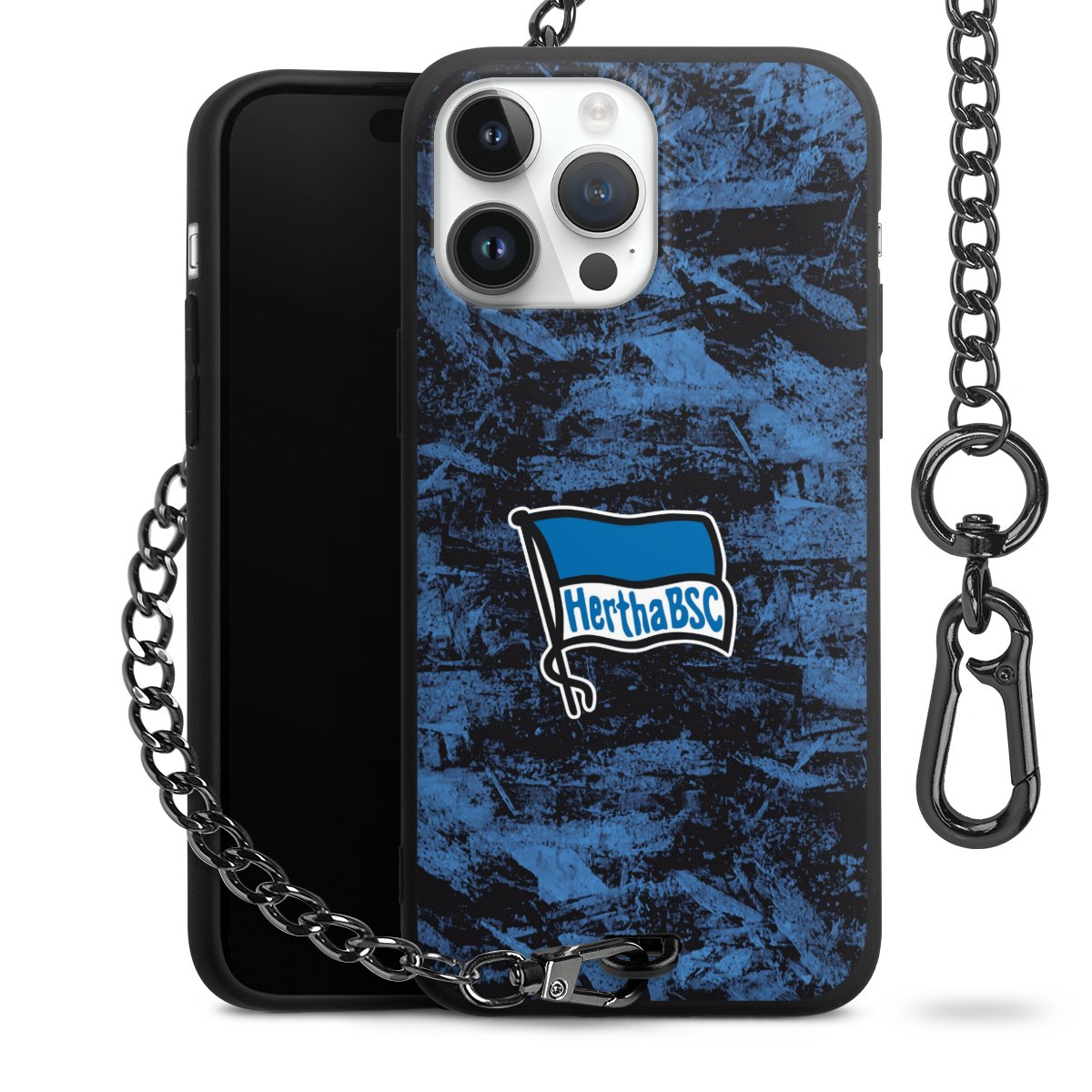 Die mattschwarze Silikon-Handyhülle besteht aus robustem TPU (thermoplastisches Polyurethan). Sie ist flexibel und schützt Dein Smartphone vor Stößen und Kratzern. Die Kette sowie der Karabinerhaken sind aus Metall in Gunmetal-Optik gefertigt. Für dieses Produkt kommen ausschließlich TÜV-geprüfte Materialien zum Einsatz.
