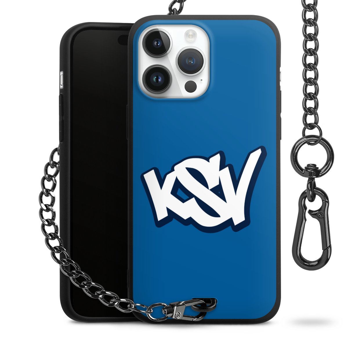 - Mattschwarze Handyhülle mit Metallkette