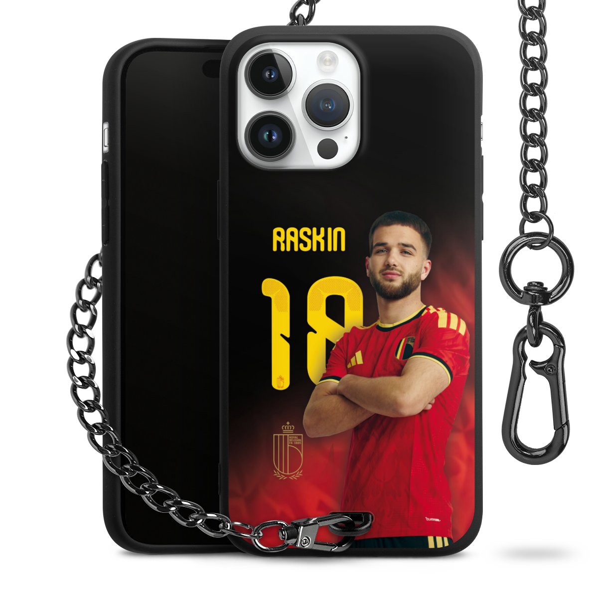 Die mattschwarze Silikon-Handyhülle besteht aus robustem TPU (thermoplastisches Polyurethan). Sie ist flexibel und schützt Dein Smartphone vor Stößen und Kratzern. Die Kette sowie der Karabinerhaken sind aus Metall in Gunmetal-Optik gefertigt. Für dieses Produkt kommen ausschließlich TÜV-geprüfte Materialien zum Einsatz.