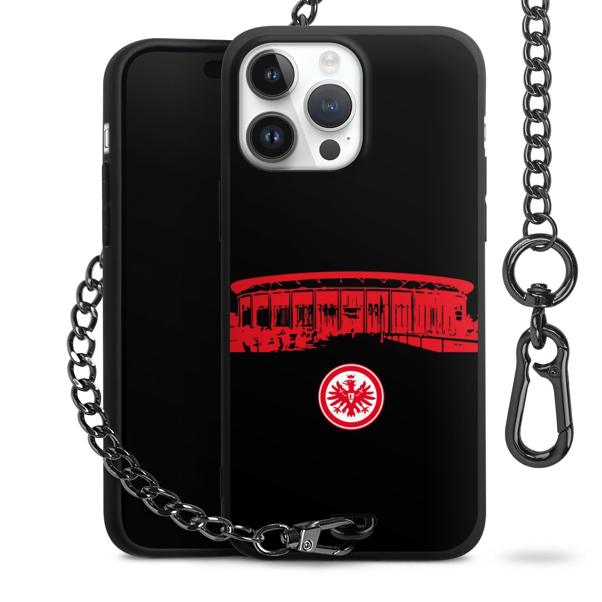 • Mattschwarze Handyhülle mit Metallkette