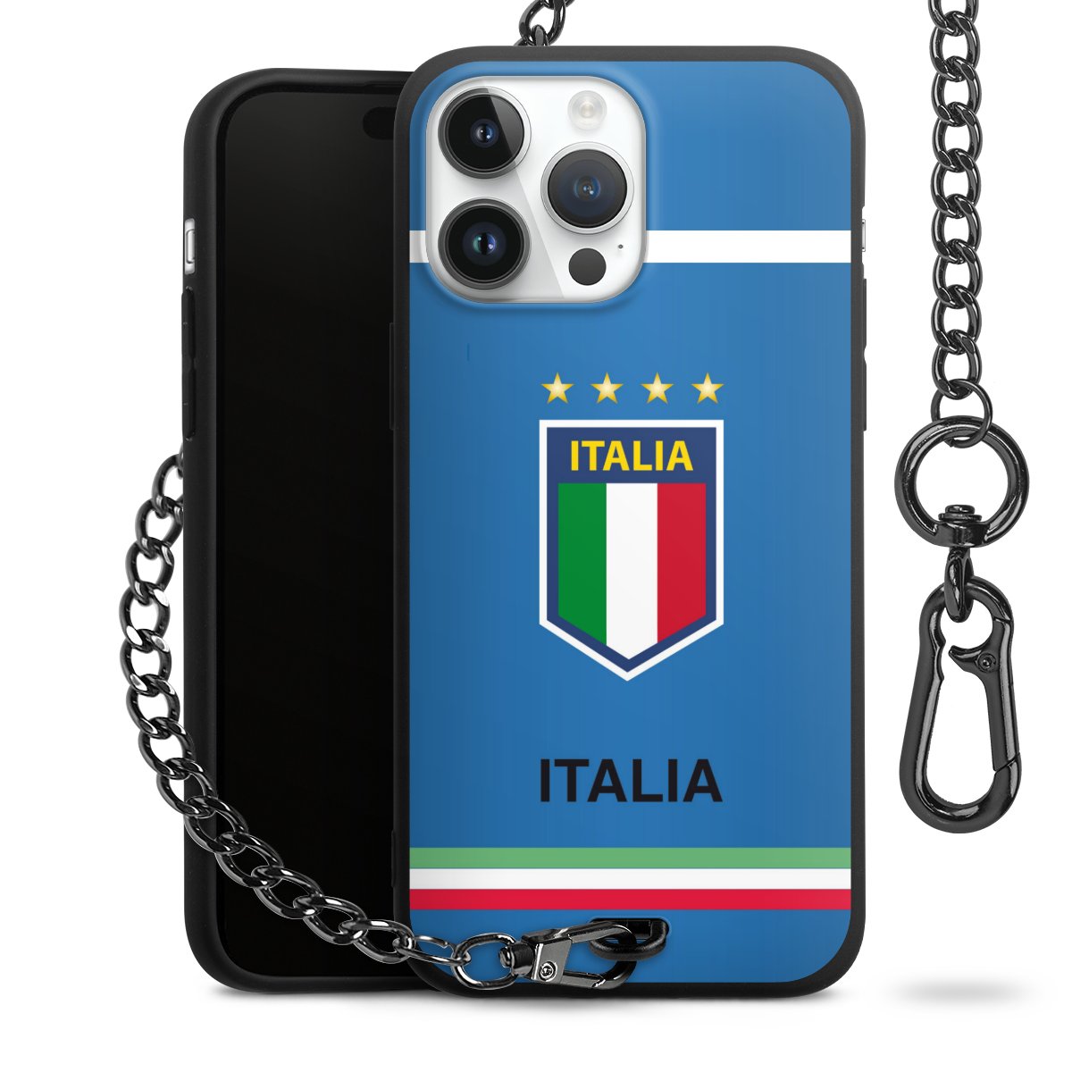 • Mattschwarze Handyhülle mit Metallkette