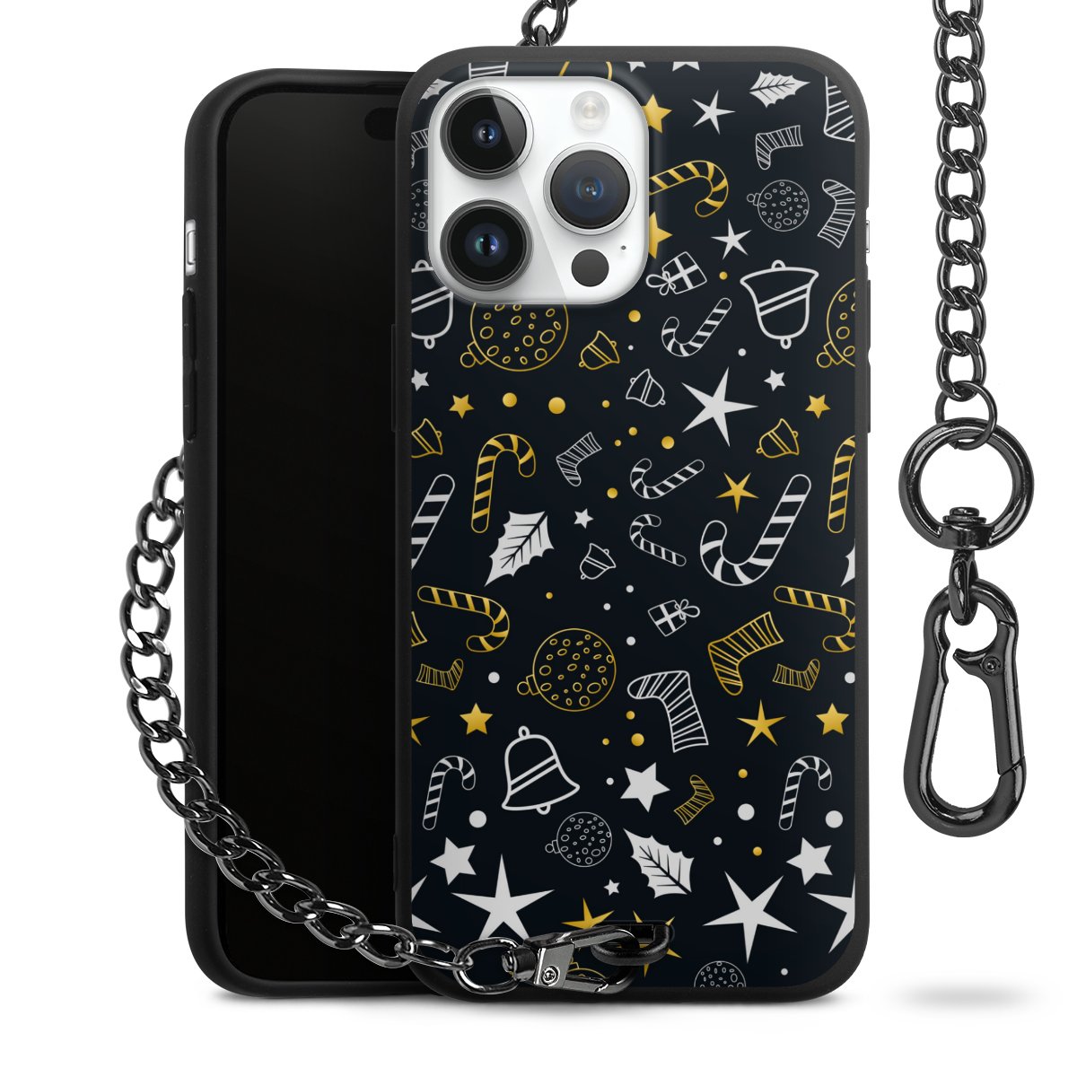 - Mattschwarze Handyhülle mit Metallkette