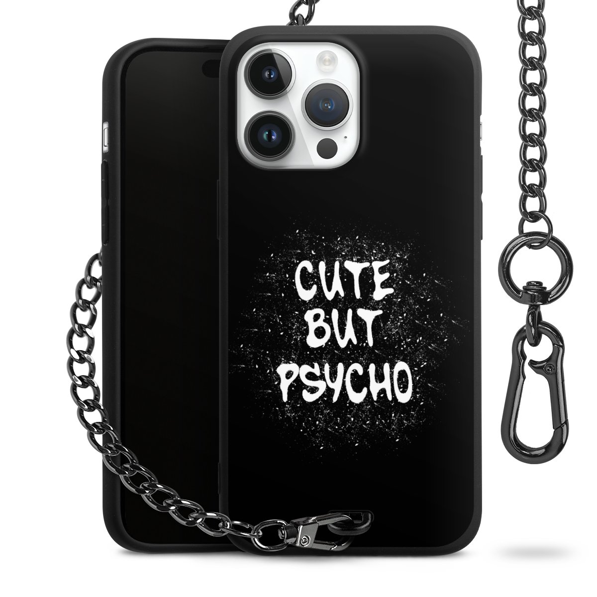 Die mattschwarze Silikon-Handyhülle besteht aus robustem TPU (thermoplastisches Polyurethan). Sie ist flexibel und schützt Dein Smartphone vor Stößen und Kratzern. Die Kette sowie der Karabinerhaken sind aus Metall in Gunmetal-Optik gefertigt. Für dieses Produkt kommen ausschließlich TÜV-geprüfte Materialien zum Einsatz.