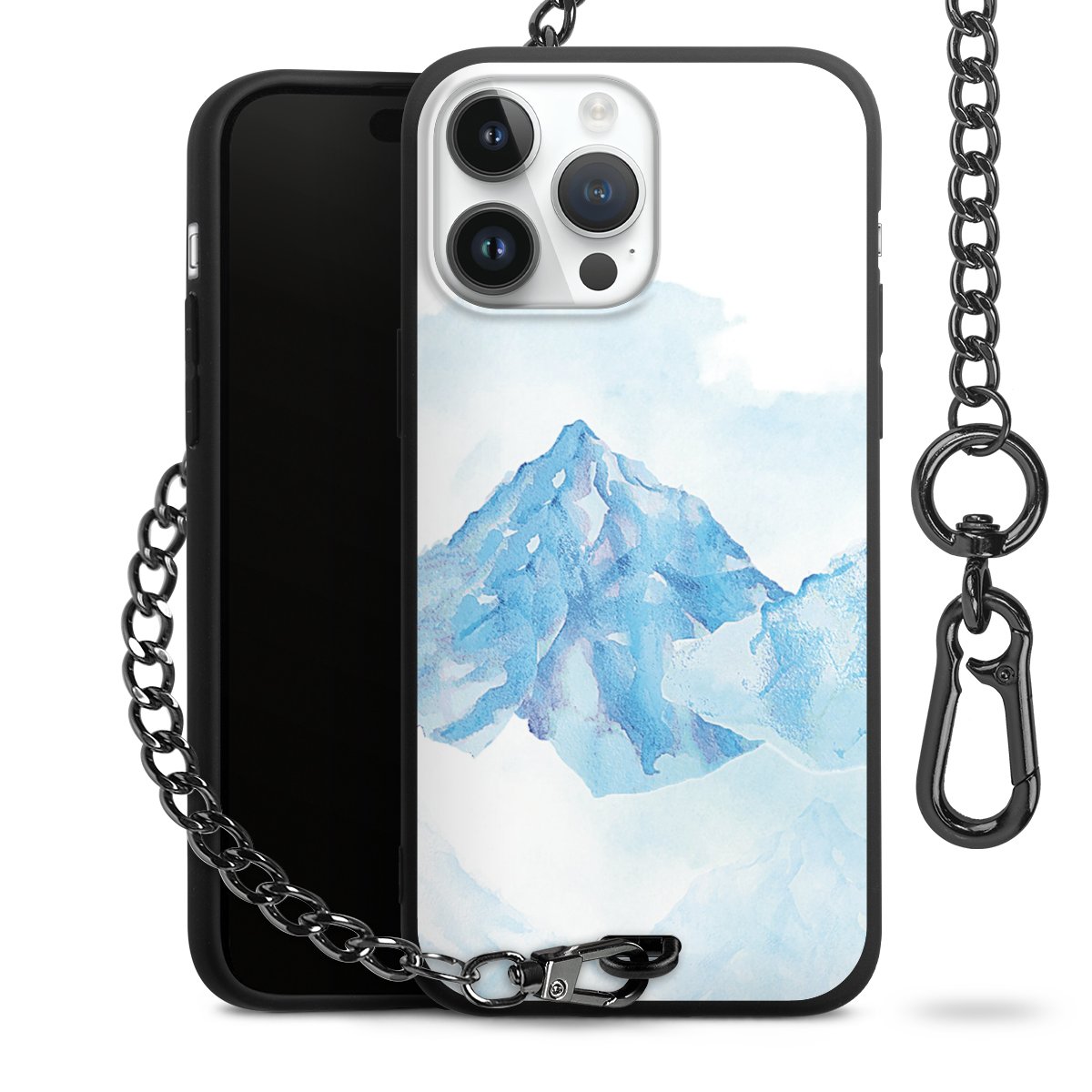 - Mattschwarze Handyhülle mit Metallkette