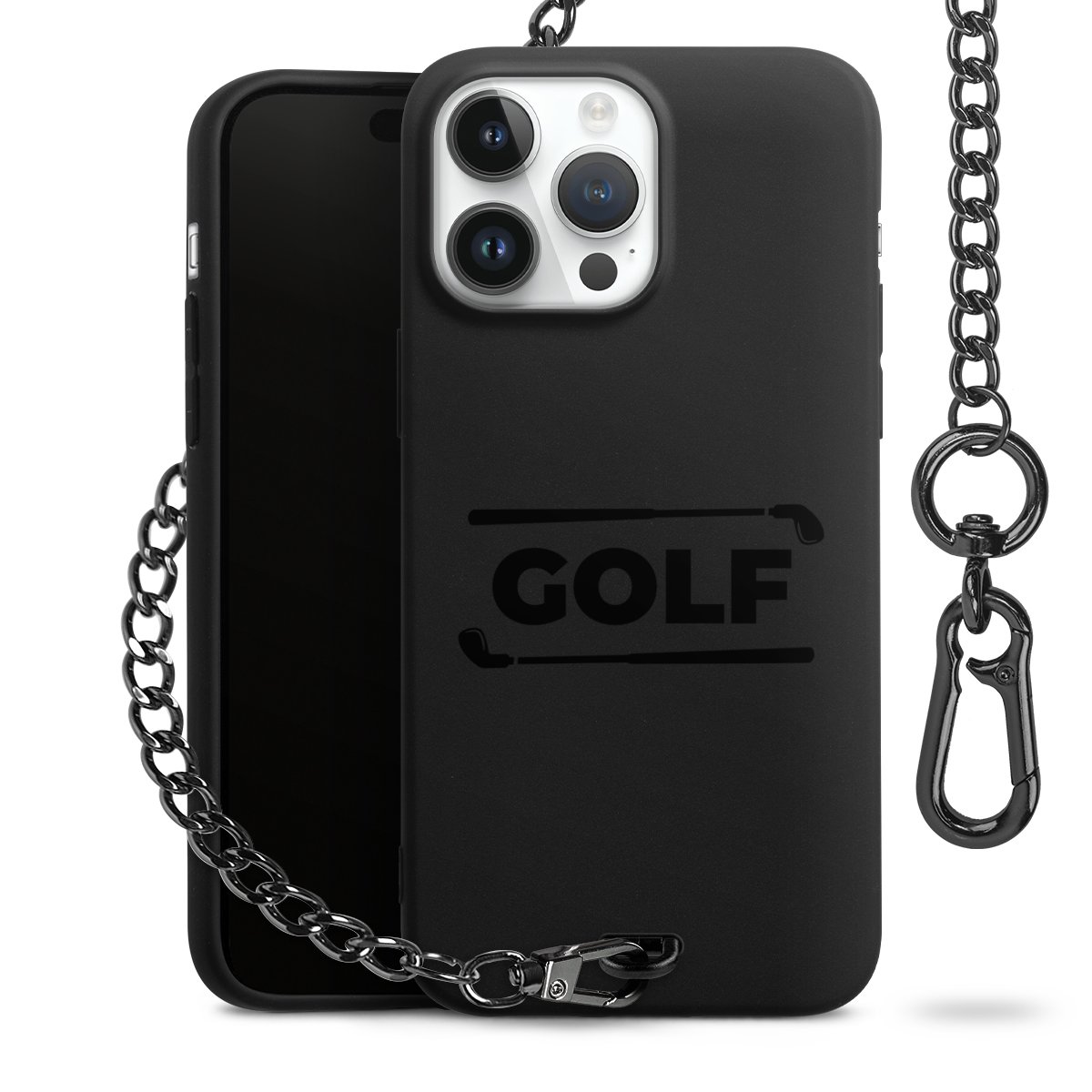 • Mattschwarze Handyhülle mit Metallkette