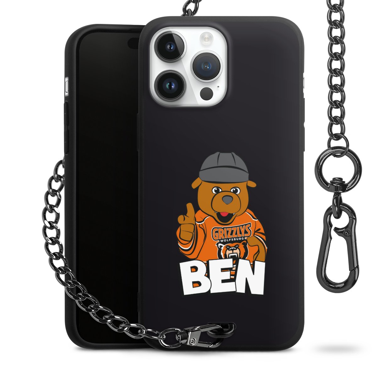 Die mattschwarze Silikon-Handyhülle besteht aus robustem TPU (thermoplastisches Polyurethan). Sie ist flexibel und schützt Dein Smartphone vor Stößen und Kratzern. Die Kette sowie der Karabinerhaken sind aus Metall in Gunmetal-Optik gefertigt. Für dieses Produkt kommen ausschließlich TÜV-geprüfte Materialien zum Einsatz.