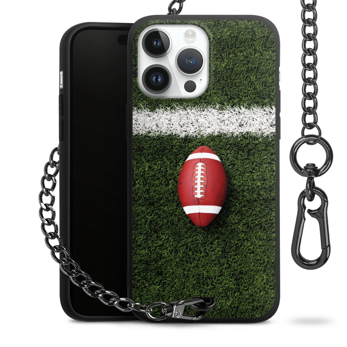 - Mattschwarze Handyhülle mit Metallkette