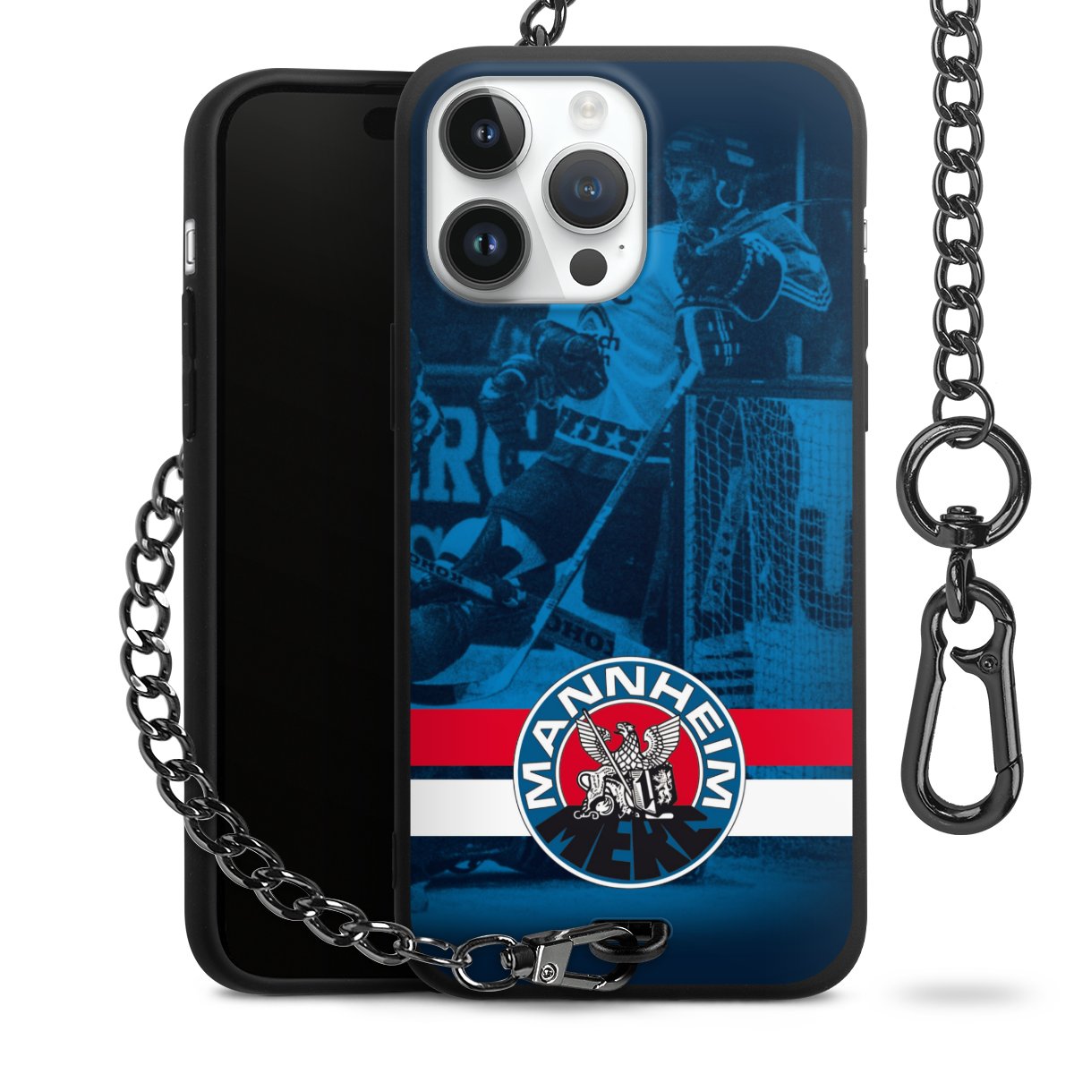 • Mattschwarze Handyhülle mit Metallkette