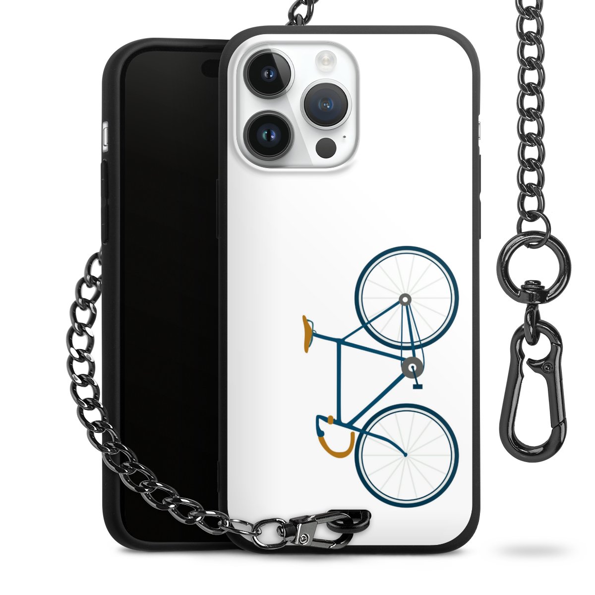 - Mattschwarze Handyhülle mit Metallkette