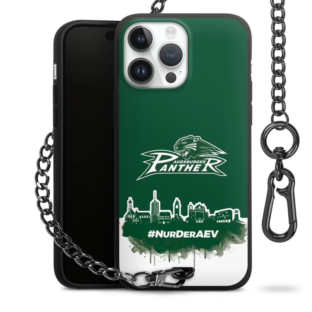 Die mattschwarze Silikon-Handyhülle besteht aus robustem TPU (thermoplastisches Polyurethan). Sie ist flexibel und schützt Dein Smartphone vor Stößen und Kratzern. Die Kette sowie der Karabinerhaken sind aus Metall in Gunmetal-Optik gefertigt. Für dieses Produkt kommen ausschließlich TÜV-geprüfte Materialien zum Einsatz.