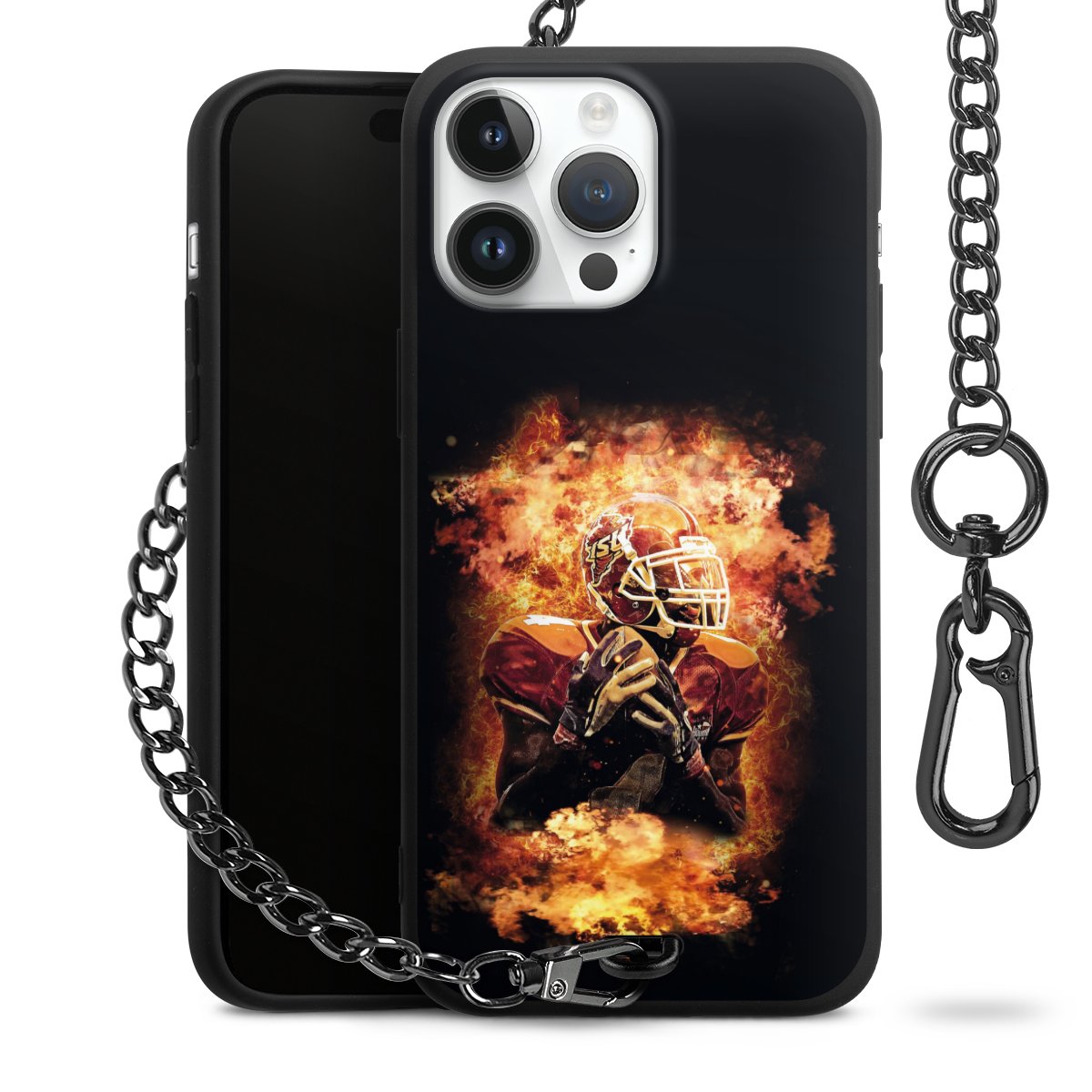 • Mattschwarze Handyhülle mit Metallkette