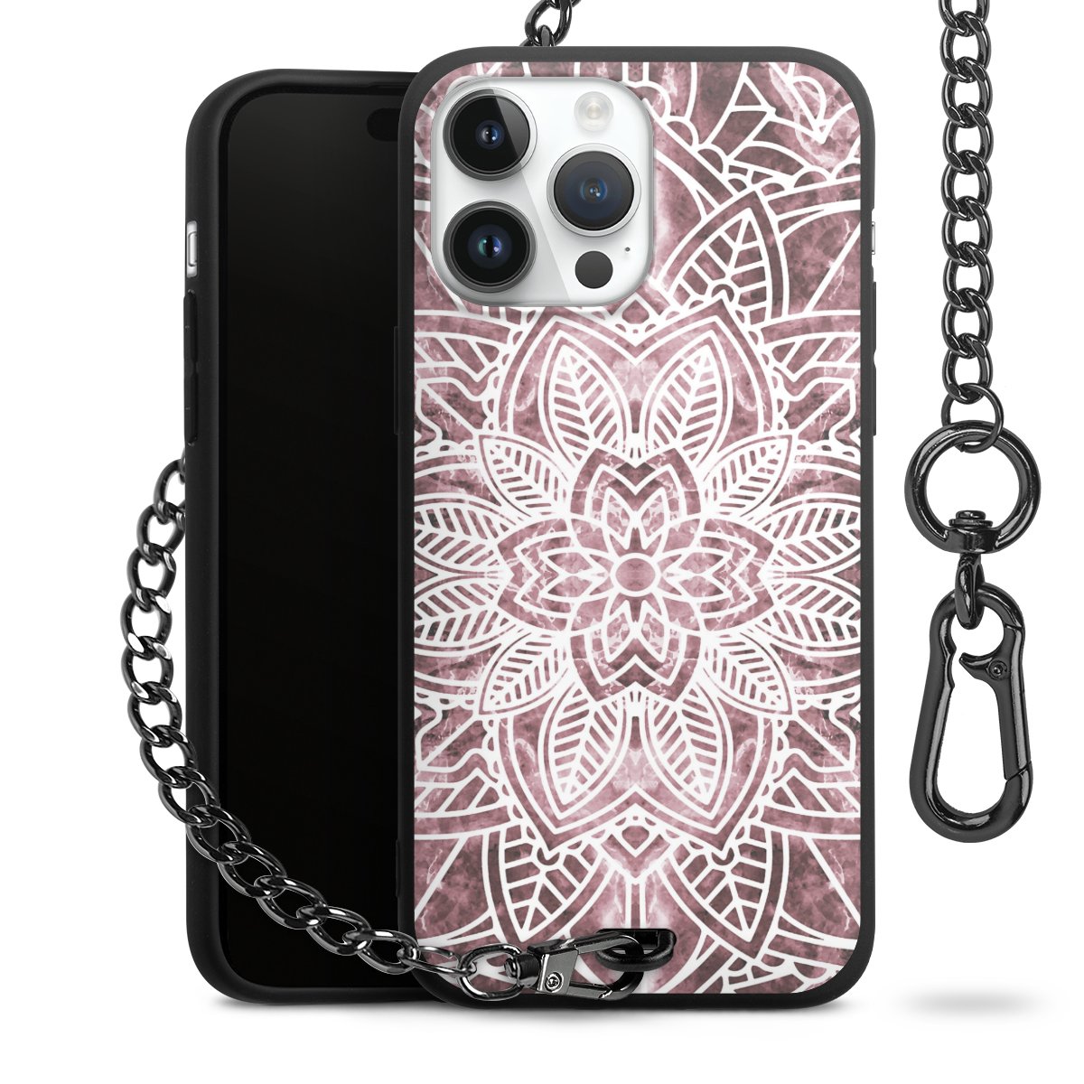 • Mattschwarze Handyhülle mit Metallkette