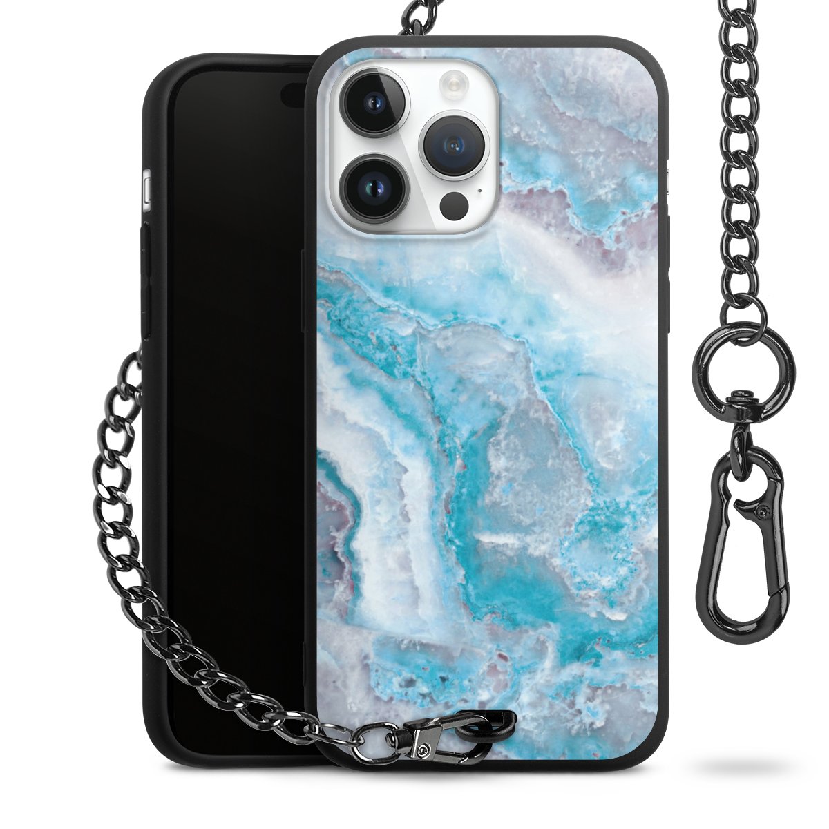 • Mattschwarze Handyhülle mit Metallkette