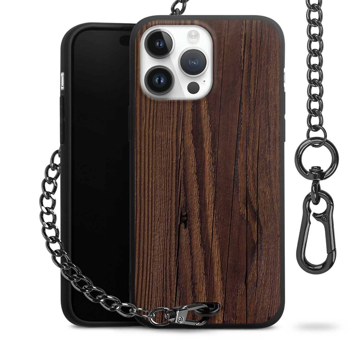 - Mattschwarze Handyhülle mit Metallkette