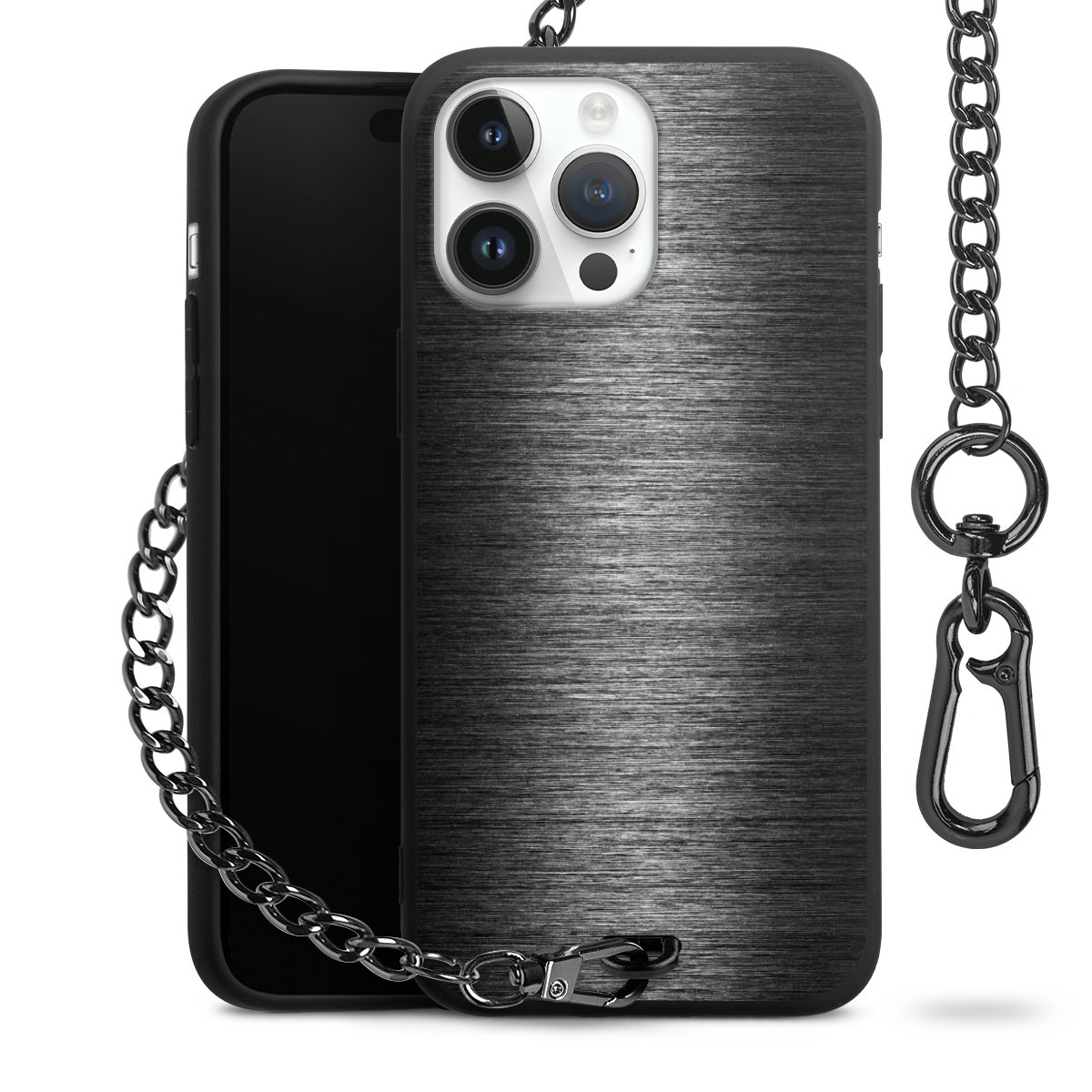 - Mattschwarze Handyhülle mit Metallkette