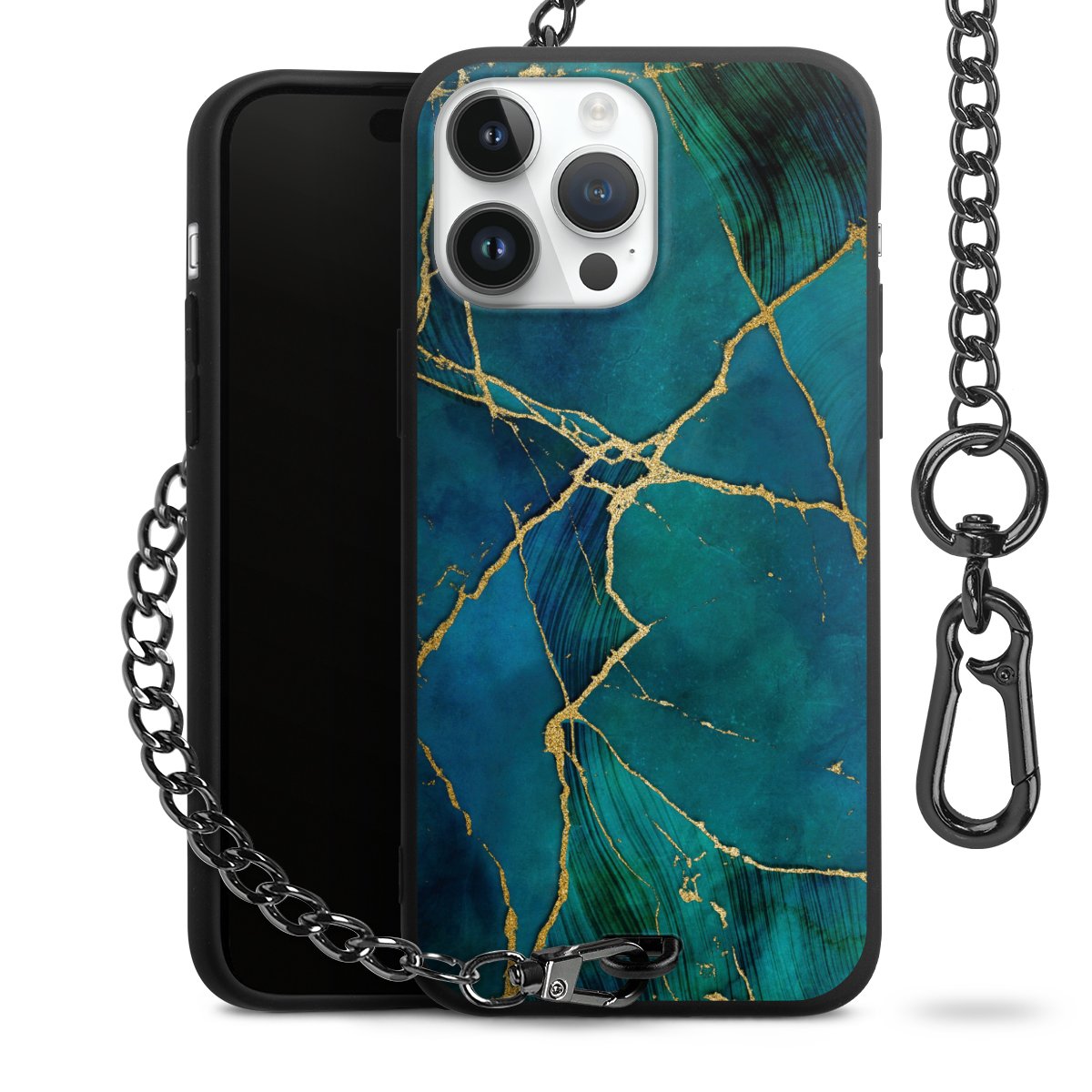 • Mattschwarze Handyhülle mit Metallkette