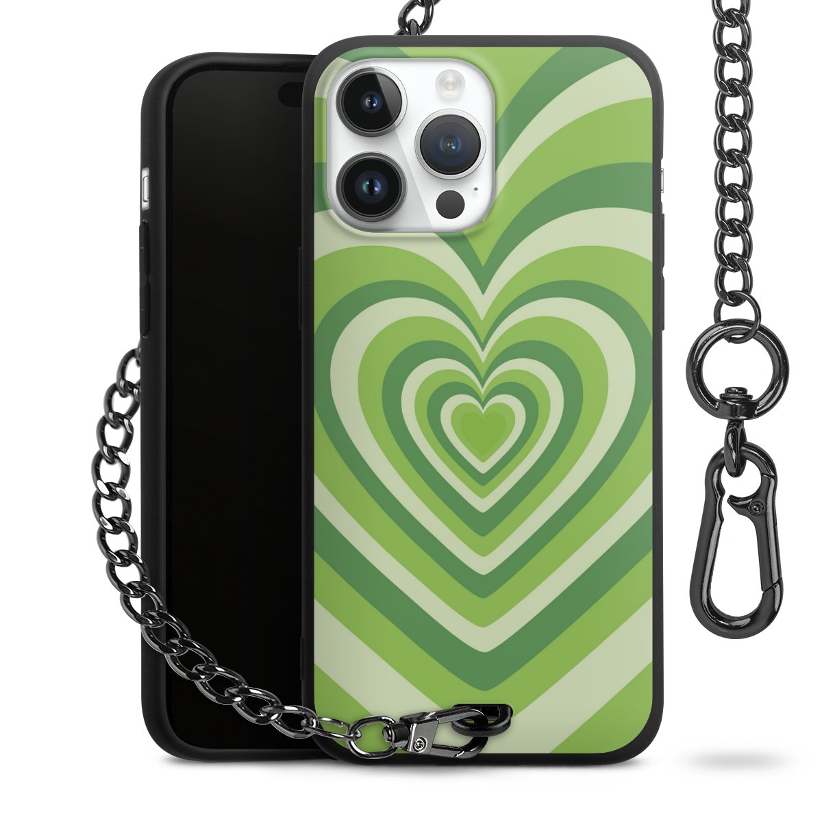 - Mattschwarze Handyhülle mit Metallkette