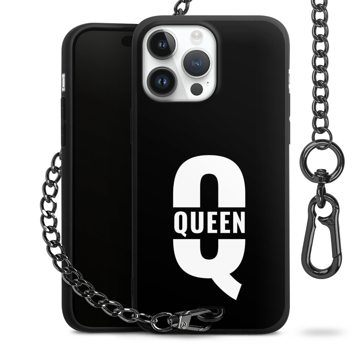 - Mattschwarze Handyhülle mit Metallkette