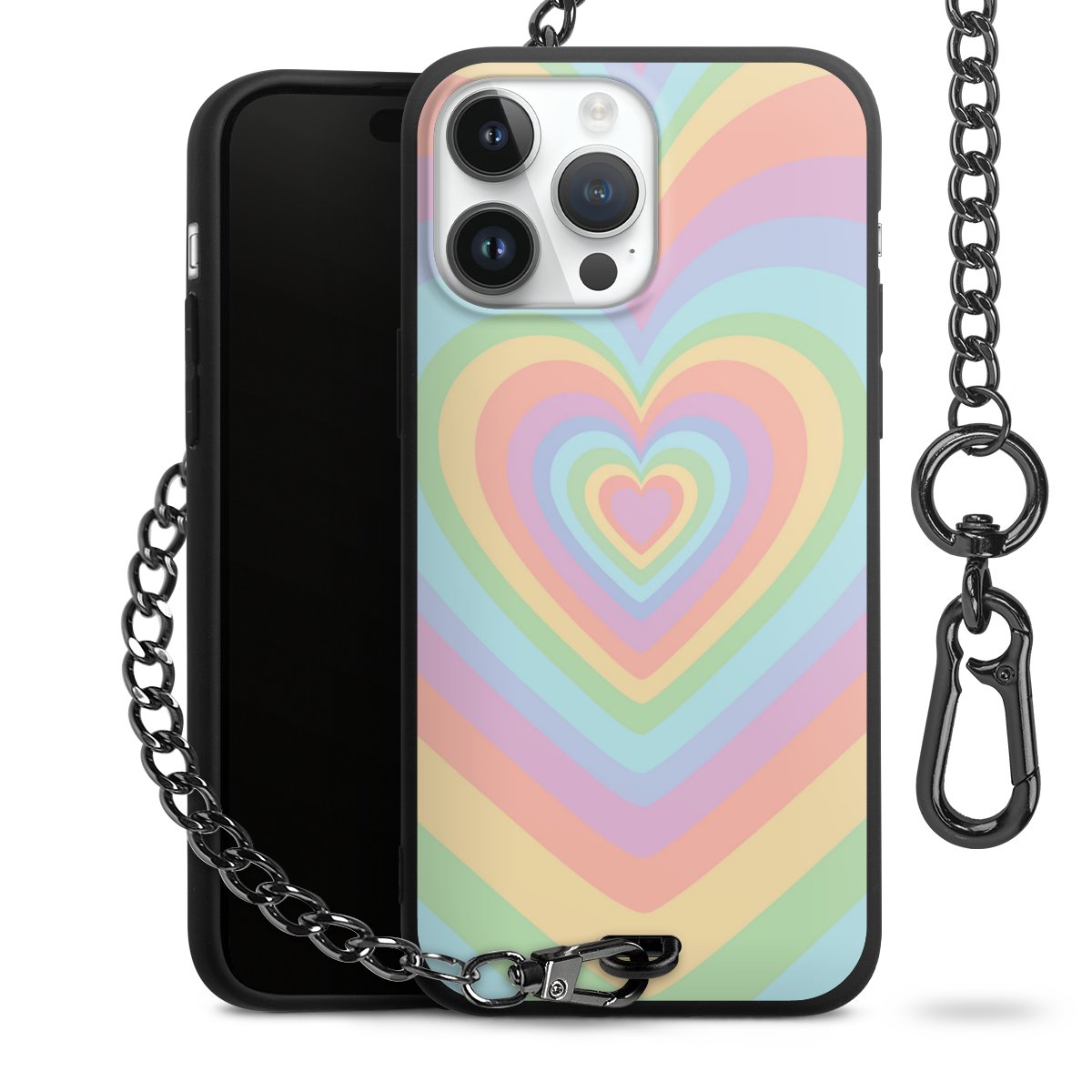 • Mattschwarze Handyhülle mit Metallkette