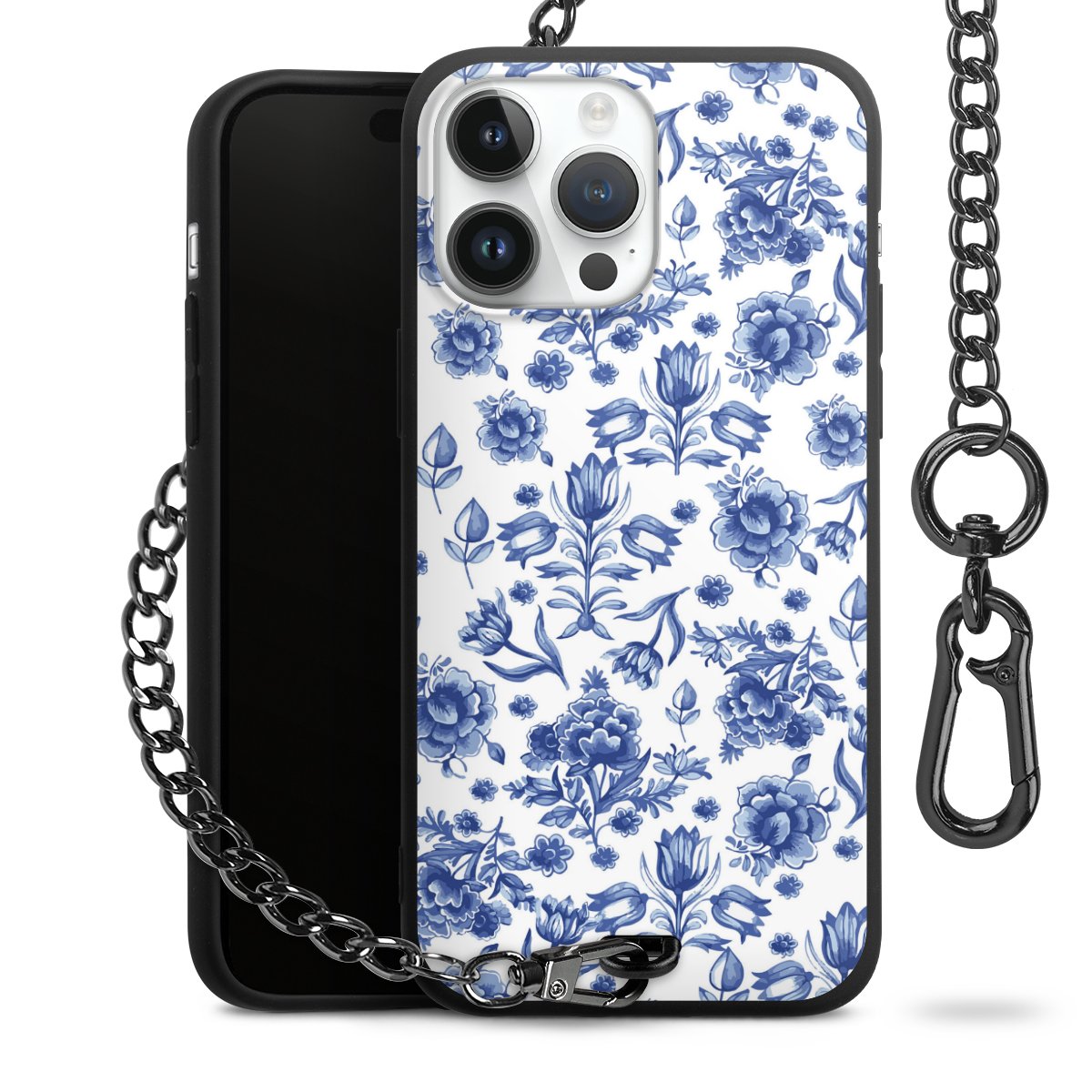 - Mattschwarze Handyhülle mit Metallkette
