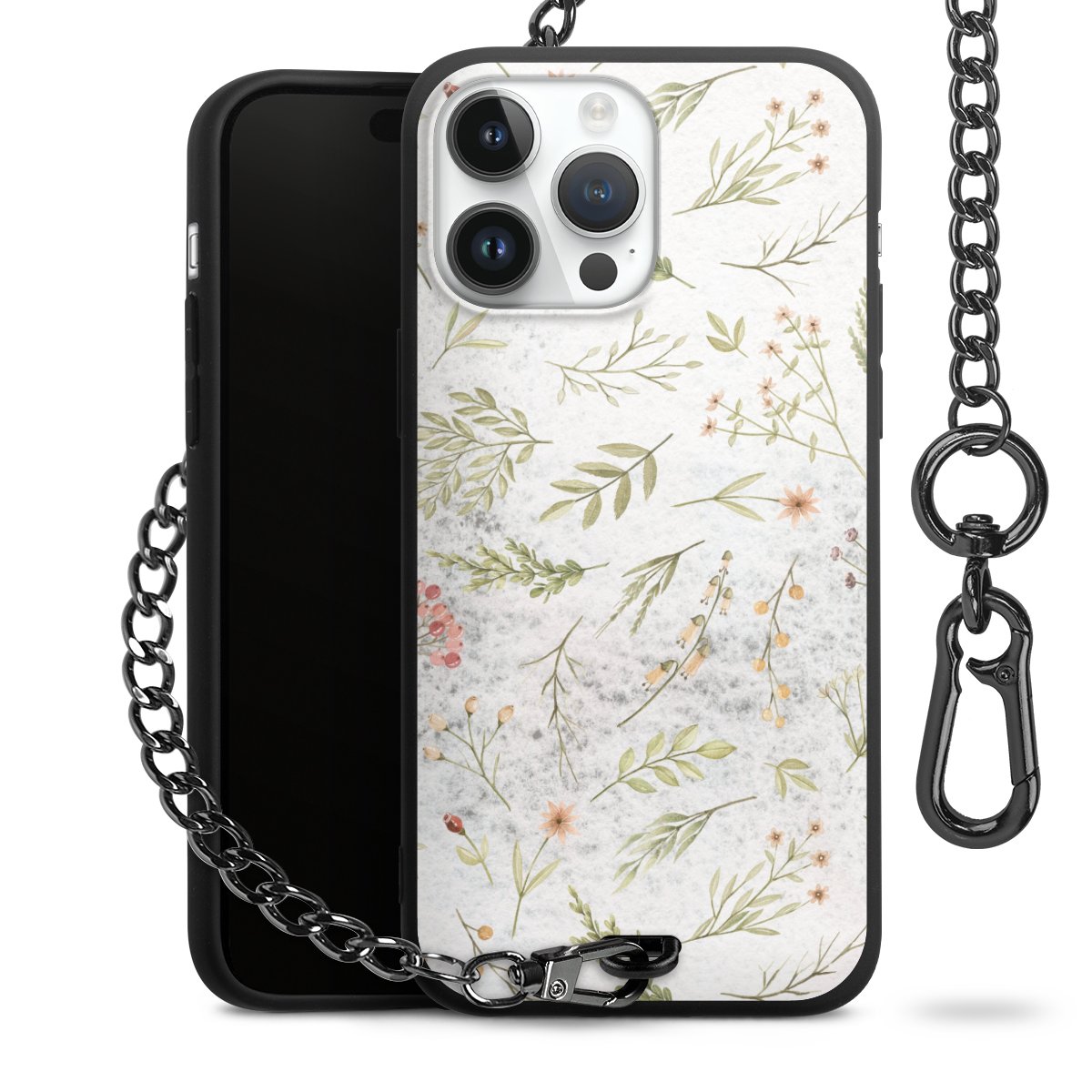 - Mattschwarze Handyhülle mit Metallkette