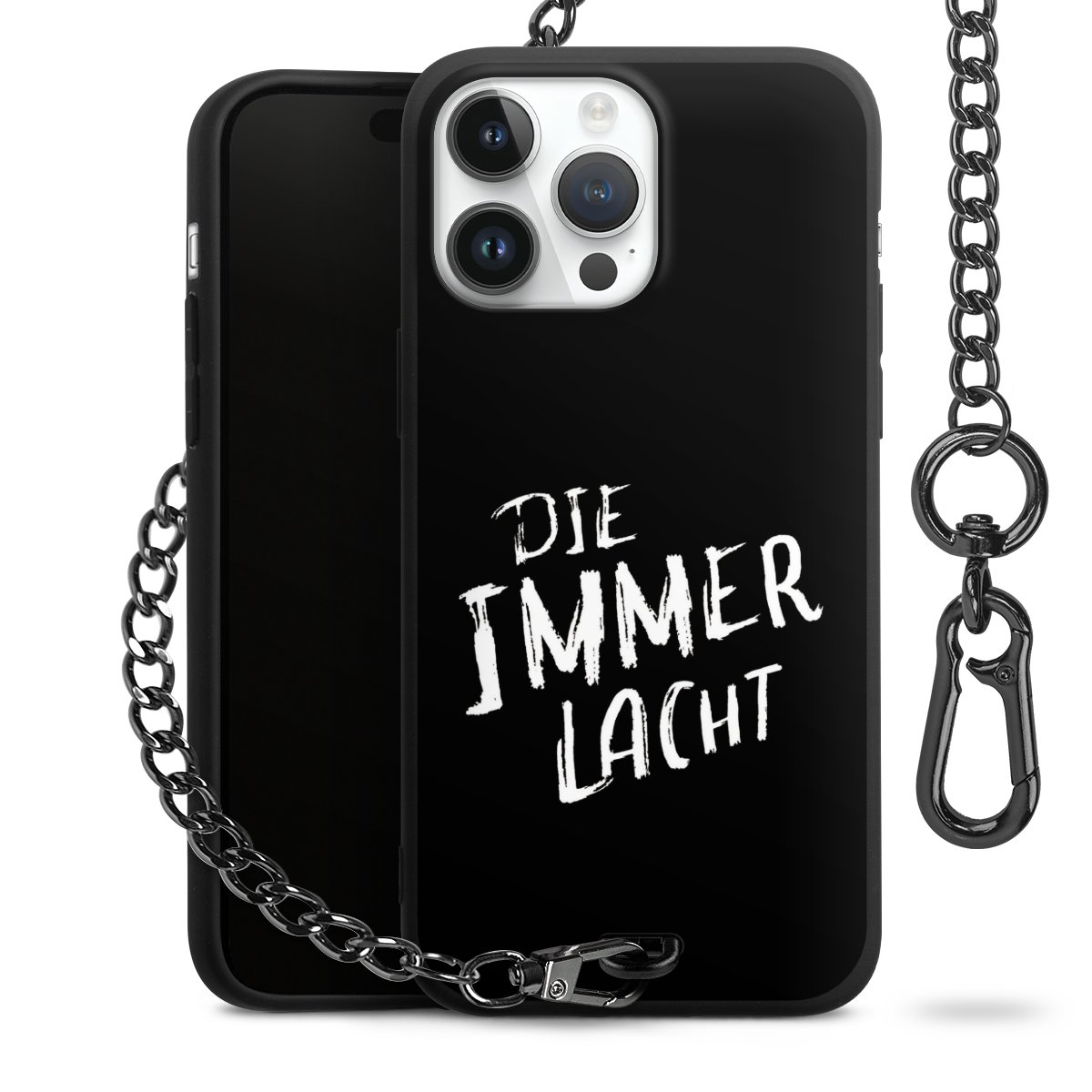Die mattschwarze Silikon-Handyhülle besteht aus robustem TPU (thermoplastisches Polyurethan). Sie ist flexibel und schützt Dein Smartphone vor Stößen und Kratzern. Die Kette sowie der Karabinerhaken sind aus Metall in Gunmetal-Optik gefertigt. Für dieses Produkt kommen ausschließlich TÜV-geprüfte Materialien zum Einsatz.